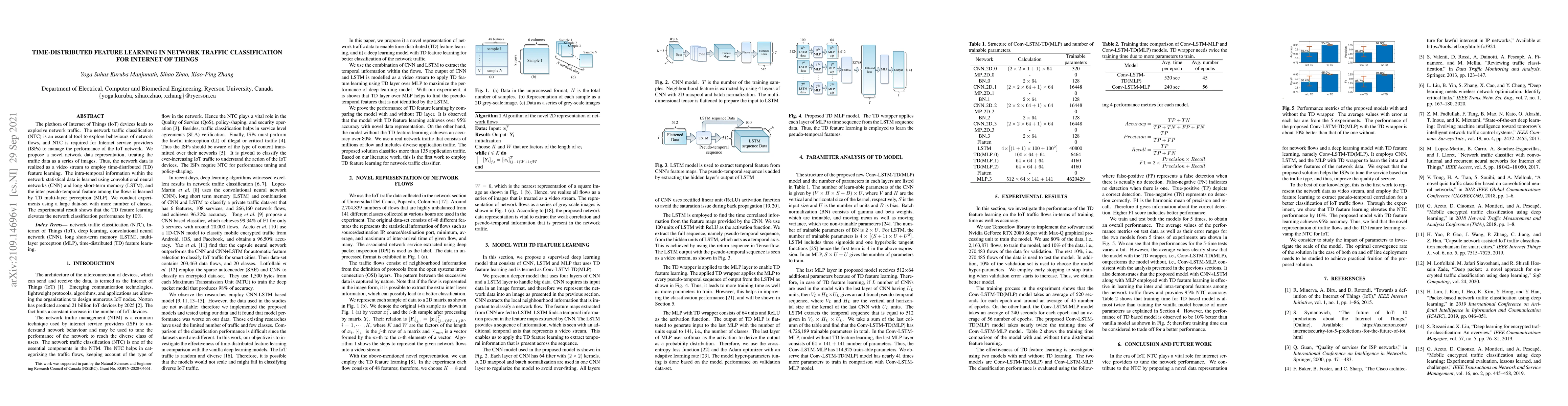 The paper introduces a method for classifying IoT network traffic by representing it as a video stream to leverage time-distributed feature learning with CNNs, LSTMs, and TD MLPs, achieving a 10% improvement in classification performance.