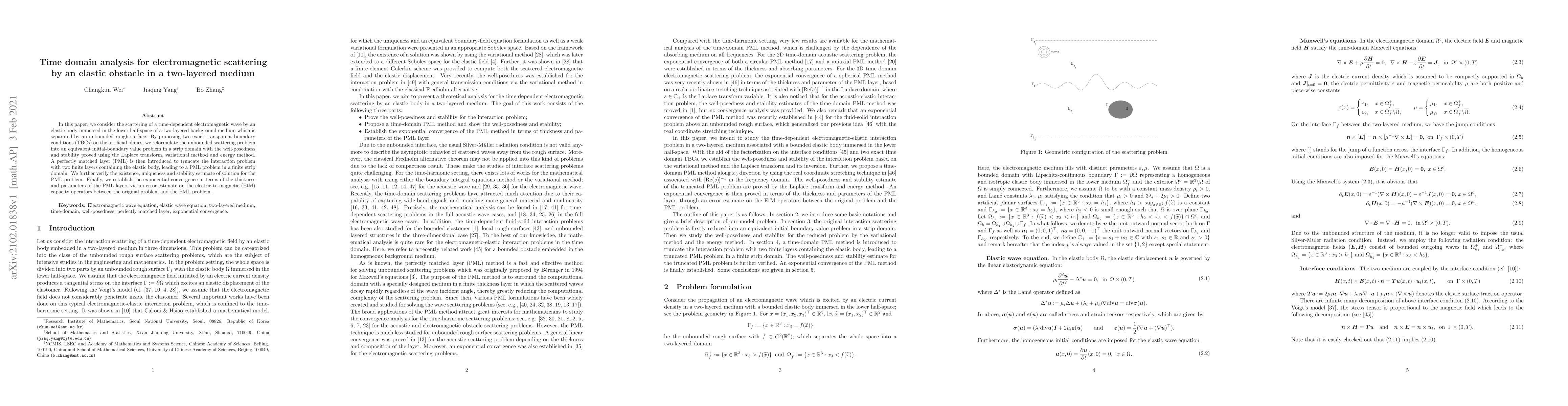 Researchers developed a new method to analyze electromagnetic scattering by an elastic obstacle in a two-layered medium, using a perfectly matched layer to truncate the interaction problem, and showed exponential convergence of the solution with PML thickness and parameters.