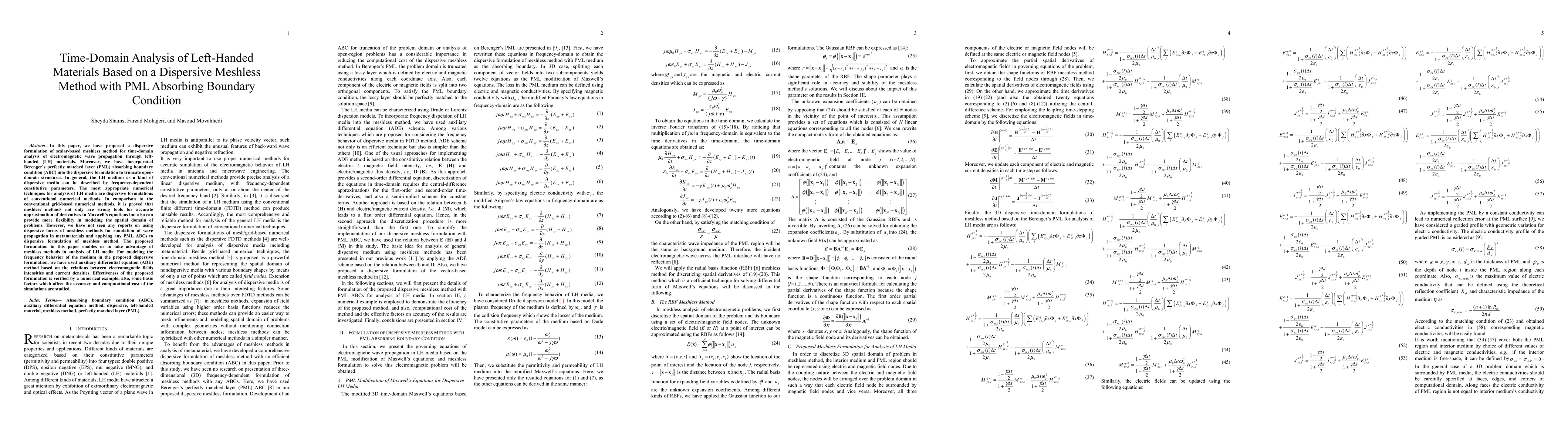 This paper proposes a dispersive meshless method with Berenger's PML for time-domain analysis of electromagnetic wave propagation through left-handed materials. The method combines meshless techniques' flexibility with PML's boundary truncation, offering an accurate and efficient simulation tool for metamaterials.