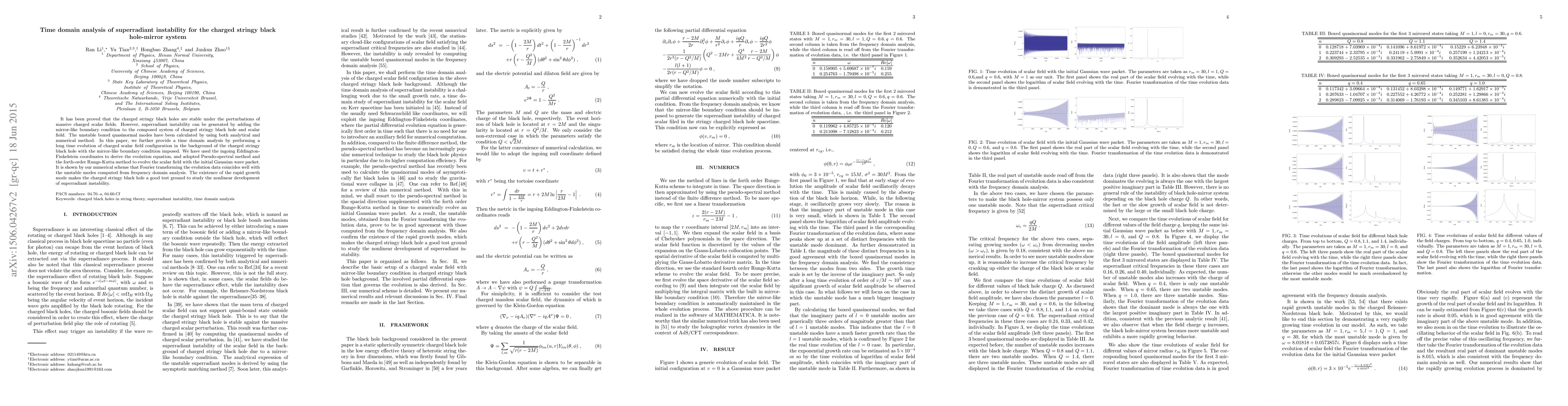 This paper investigates the superradiant instability in a charged stringy black hole-mirror system, demonstrating that the addition of a mirror boundary condition induces instability. Through time domain analysis using long-term evolution of the scalar field, the study confirms the presence of unstable quasinormal modes, validating the findings from frequency domain analysis.