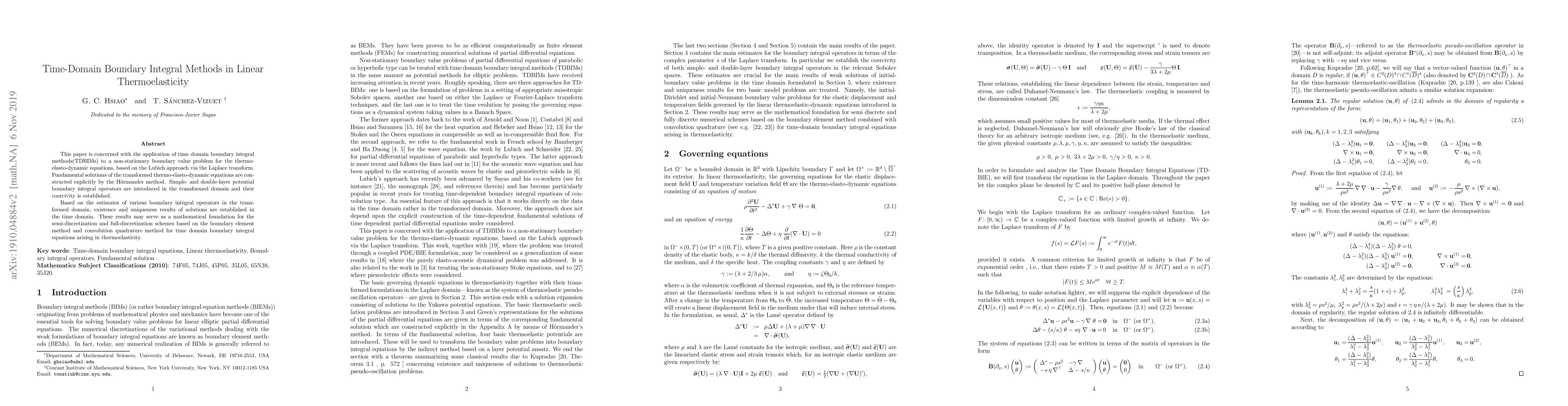 This paper applies time-domain boundary integral methods to the non-stationary thermo-elasto-dynamic equations, constructing fundamental solutions using the H{\"o}rmander method and establishing the coercivity of boundary integral operators. It provides existence and uniqueness results for solutions, laying a mathematical foundation for boundary element method-based semi-discretization and full-discretization schemes.