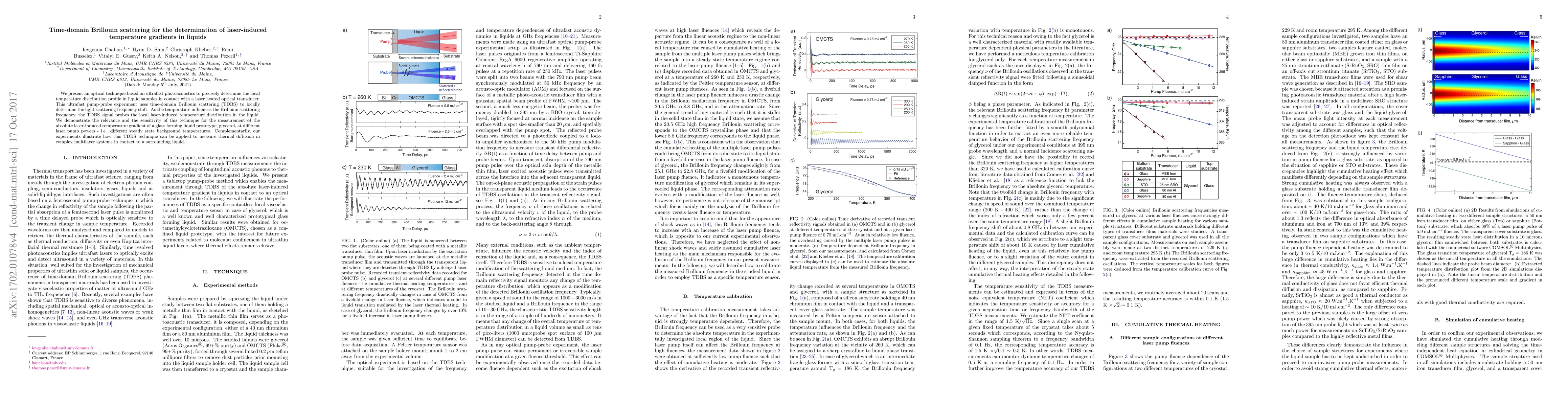 This paper introduces an ultrafast photoacoustic technique using time-domain Brillouin scattering (TDBS) to measure local temperature distributions in liquid samples heated by lasers. The method demonstrates precise determination of laser-induced temperature gradients in glycerol and thermal diffusion in multilayer systems.