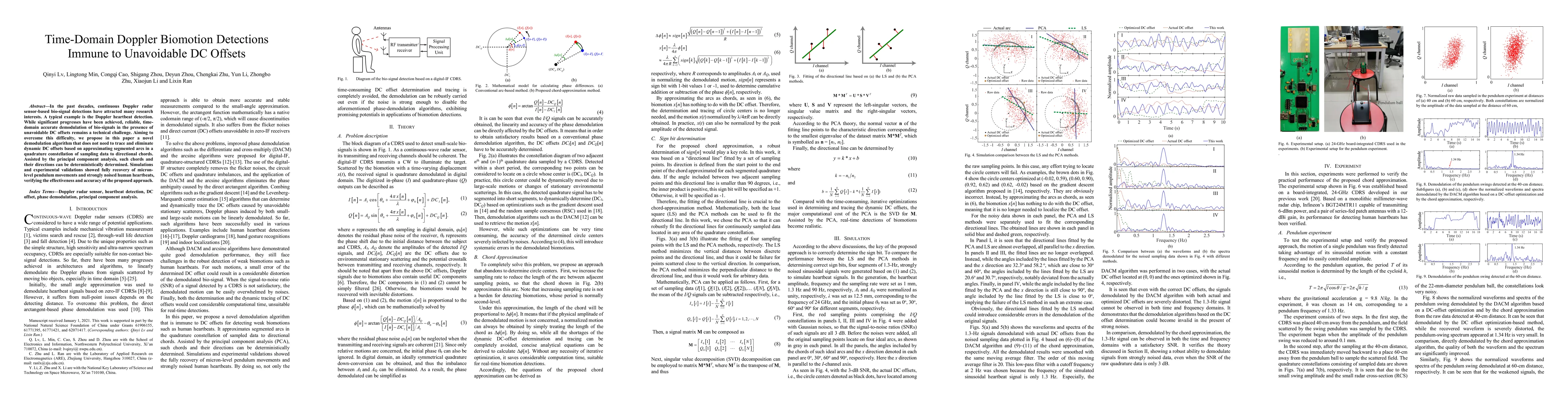 In the past decades, continuous Doppler radar sensor-based bio-signal detections have attracted many research interests. A typical example is the Doppler heartbeat detection. While significant progresses have been achieved, reliable, time-domain accurate demodulation of bio-signals in the presence of unavoidable DC offsets remains a technical challenge. Aiming to overcome this difficulty, we propose in this paper a novel demodulation algorithm that does not need to trace and eliminate dynamic DC offsets based on approximating segmented arcs in a quadrature constellation of sampling data to directional chords. Assisted by the principal component analysis, such chords and their directions can be deterministically determined. Simulations and experimental validations showed fully recovery of micron-level pendulum movements and strongly noised human heartbeats, verifying the effectiveness and accuracy of the proposed approach.