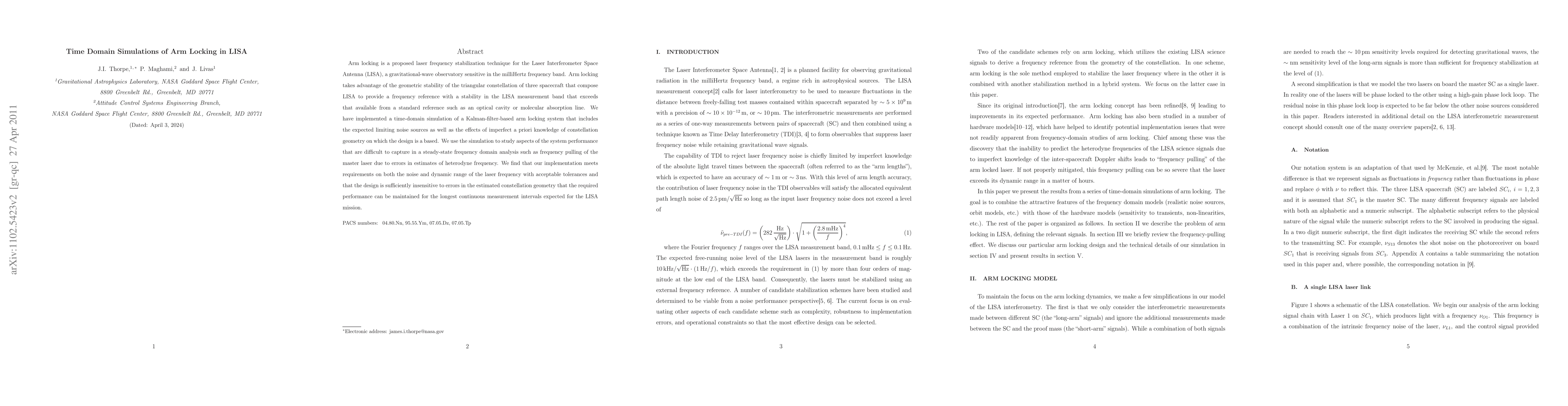 The paper presents a time-domain simulation of arm locking in LISA, incorporating various noise sources and imperfect knowledge of heterodyne frequencies, which validates the arm locking technique for LISA's requirements.