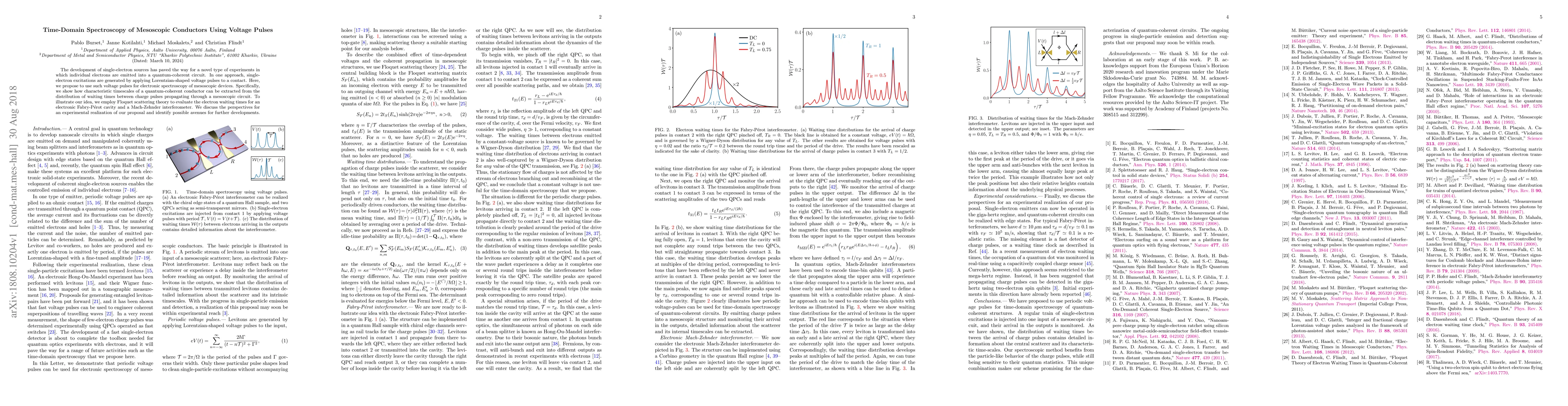 The development of single-electron sources has paved the way for a novel type of experiments in which individual electrons are emitted into a quantum-coherent circuit. In one approach, single-electron excitations are generated by applying Lorentzian-shaped voltage pulses to a contact. Here, we propose to use such voltage pulses for electronic spectroscopy of mesoscopic devices. Specifically, we show how characteristic timescales of a quantum-coherent conductor can be extracted from the distribution of waiting times between charge pulses propagating through a mesoscopic circuit. To illustrate our idea, we employ Floquet scattering theory to evaluate the electron waiting times for an electronic Fabry-P\'erot cavity and a Mach-Zehnder interferometer. We discuss the perspectives for an experimental realization of our proposal and identify possible avenues for further developments.