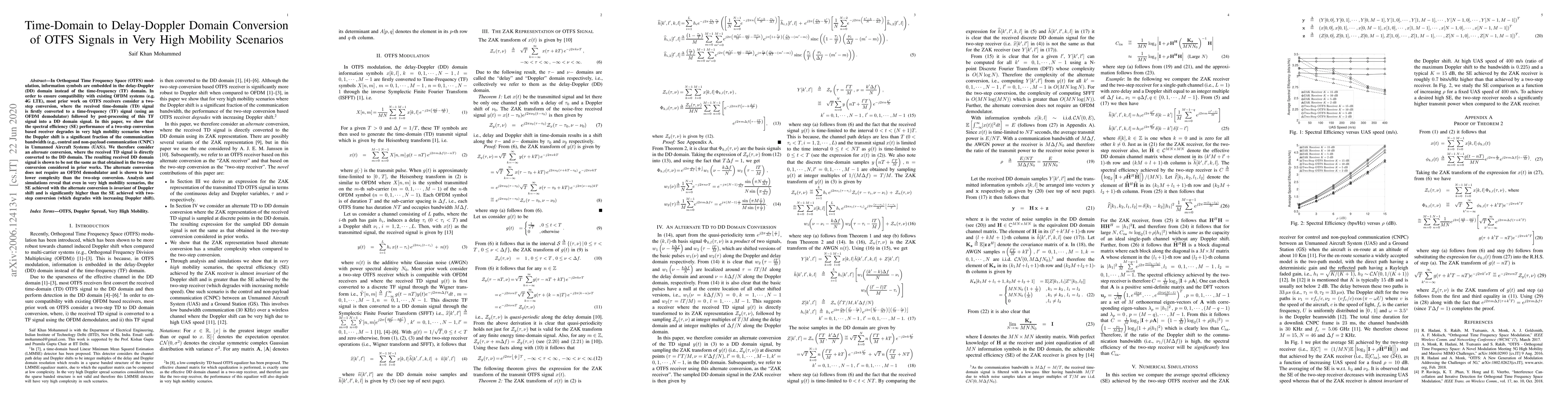 Researchers proposed a new conversion method for Orthogonal Time Frequency Space (OTFS) signals that directly converts received time-domain signals to delay-Doppler domain without requiring an OFDM demodulator, achieving higher spectral efficiency in high mobility scenarios.