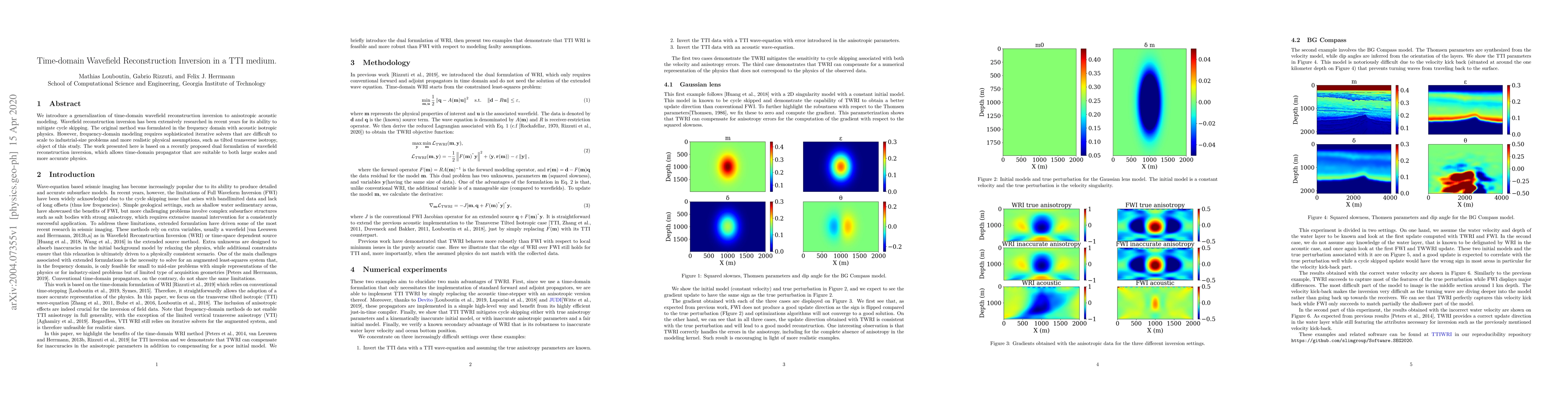We introduce a generalization of time-domain wavefield reconstruction inversion to anisotropic acoustic modeling. Wavefield reconstruction inversion has been extensively researched in recent years for its ability to mitigate cycle skipping. The original method was formulated in the frequency domain with acoustic isotropic physics. However, frequency-domain modeling requires sophisticated iterative solvers that are difficult to scale to industrial-size problems and more realistic physical assumptions, such as tilted transverse isotropy, object of this study. The work presented here is based on a recently proposed dual formulation of wavefield reconstruction inversion, which allows time-domain propagator that are suitable to both large scales and more accurate physics.