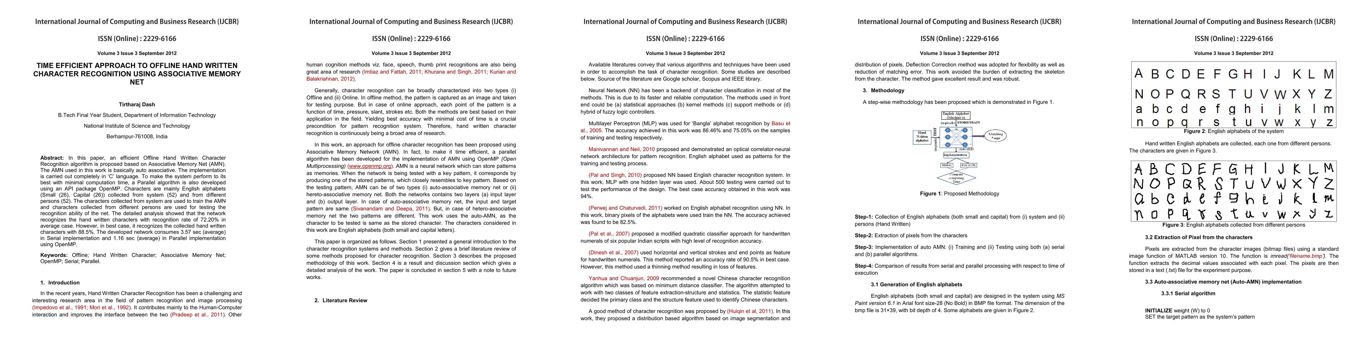 A research paper proposes an efficient Offline Hand Written Character Recognition algorithm using Associative Memory Net with a recognition rate of 72.20% on average, improving computation time from 3.57 seconds to 1.16 seconds with parallel processing.
