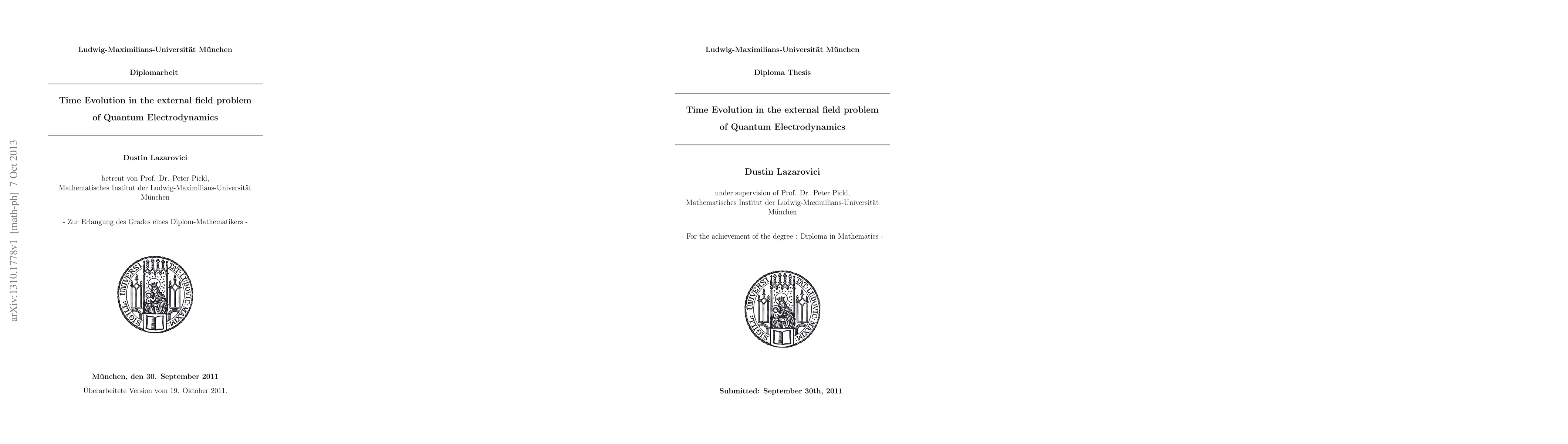 This paper investigates the time evolution in Quantum Electrodynamics (QED) under external fields, demonstrating that standard second quantization fails due to the Shale-Stinespring condition not being met. It proposes rigorous methods for time evolution in QED, comparing different constructions of the fermionic Fock space, and resolves gauge anomalies in the renormalization process.