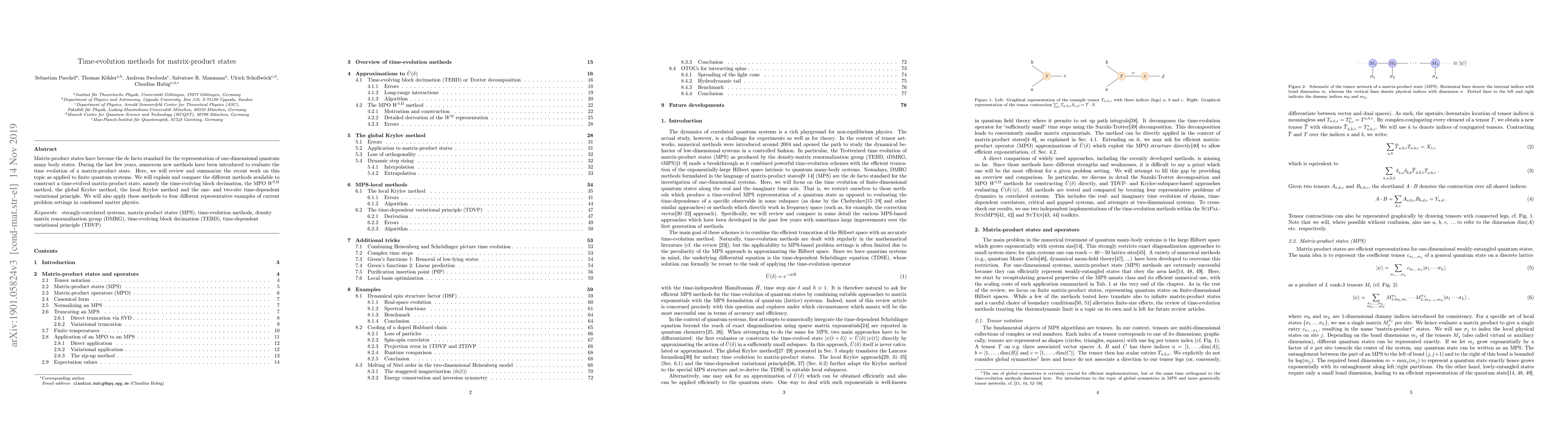 This paper reviews recent methods for time-evolution of matrix-product states in finite quantum systems, comparing techniques like time-evolving block decimation, MPO $W^\mathrm{II}$ method, and Krylov methods. It applies these methods to examples in condensed matter physics.