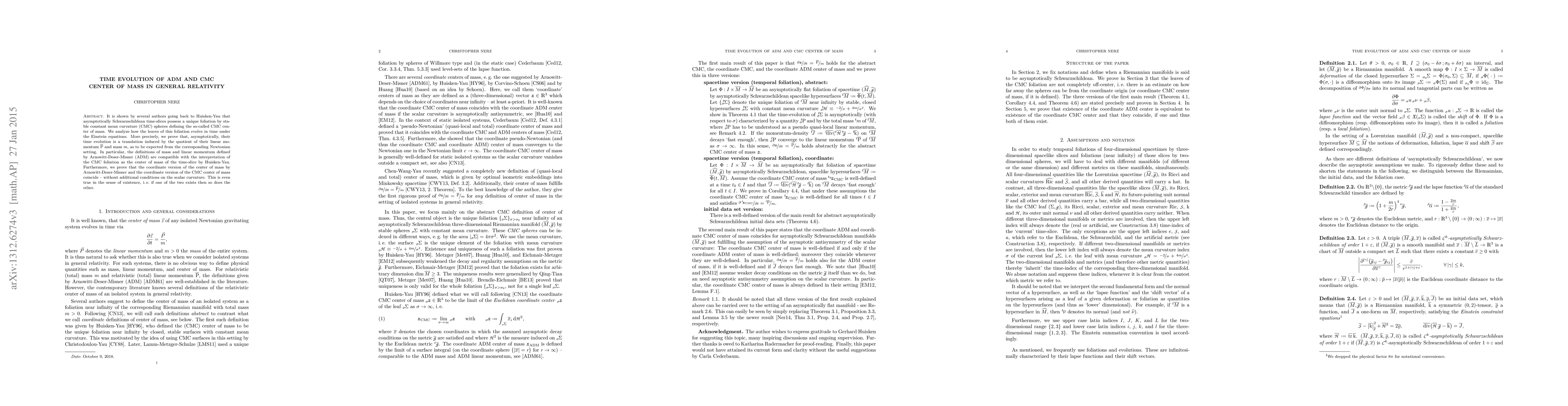 It is shown by several authors going back to Huisken-Yau that asymptotically Schwarzschildean time-slices possess a unique foliation by stable constant mean curvature (CMC) spheres defining the so-called CMC center of mass. We analyze how the leaves of this foliation evolve in time under the Einstein equations. More precisely, we prove that, asymptotically, their time evolution is a translation induced by the quotient of their linear momentum and mass, as to be expected from the corresponding Newtonian setting. In particular, the definitions of mass and linear momentum defined by Arnowitt-Deser-Misner (ADM) are compatible with the interpretation of the CMC foliation as the center of mass of the time-slice by Huisken-Yau. Furthermore, we prove that the coordinate version of the center of mass by Arnowitt-Deser-Misner and the coordinate version of the CMC center of mass coincide - without additional conditions on the scalar curvature. This is even true in the sense of existence, i.e. if one of the two exists then so does the other.