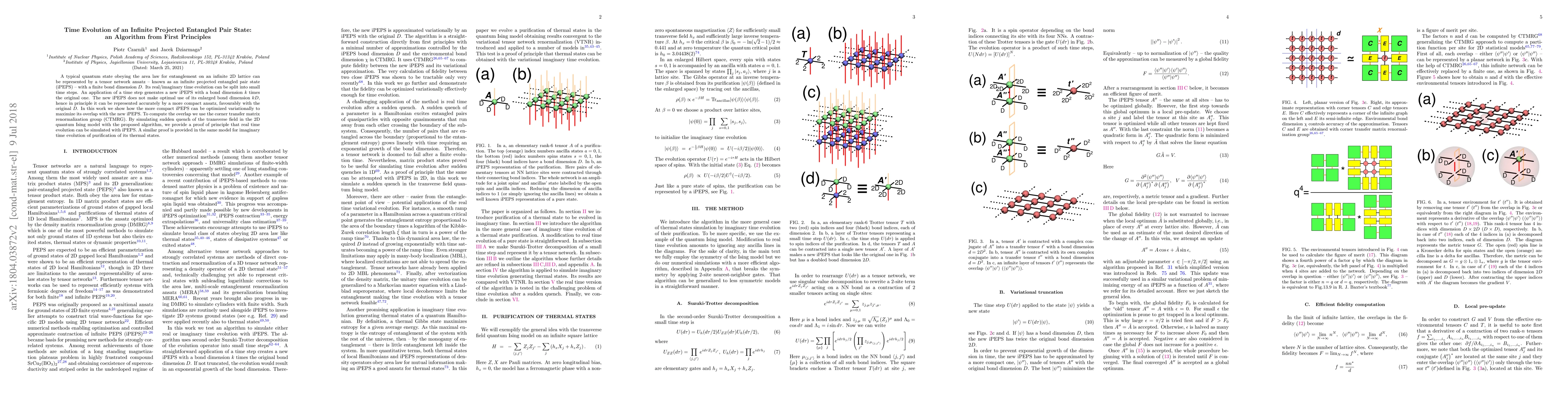A typical quantum state obeying the area law for entanglement on an infinite 2D lattice can be represented by a tensor network ansatz -- known as an infinite projected entangled pair state (iPEPS) -- with a finite bond dimension $D$. Its real/imaginary time evolution can be split into small time steps. An application of a time step generates a new iPEPS with a bond dimension $k$ times the original one. The new iPEPS does not make optimal use of its enlarged bond dimension $kD$, hence in principle it can be represented accurately by a more compact ansatz, favourably with the original $D$. In this work we show how the more compact iPEPS can be optimized variationally to maximize its overlap with the new iPEPS. To compute the overlap we use the corner transfer matrix renormalization group (CTMRG). By simulating sudden quench of the transverse field in the 2D quantum Ising model with the proposed algorithm, we provide a proof of principle that real time evolution can be simulated with iPEPS. A similar proof is provided in the same model for imaginary time evolution of purification of its thermal states.
