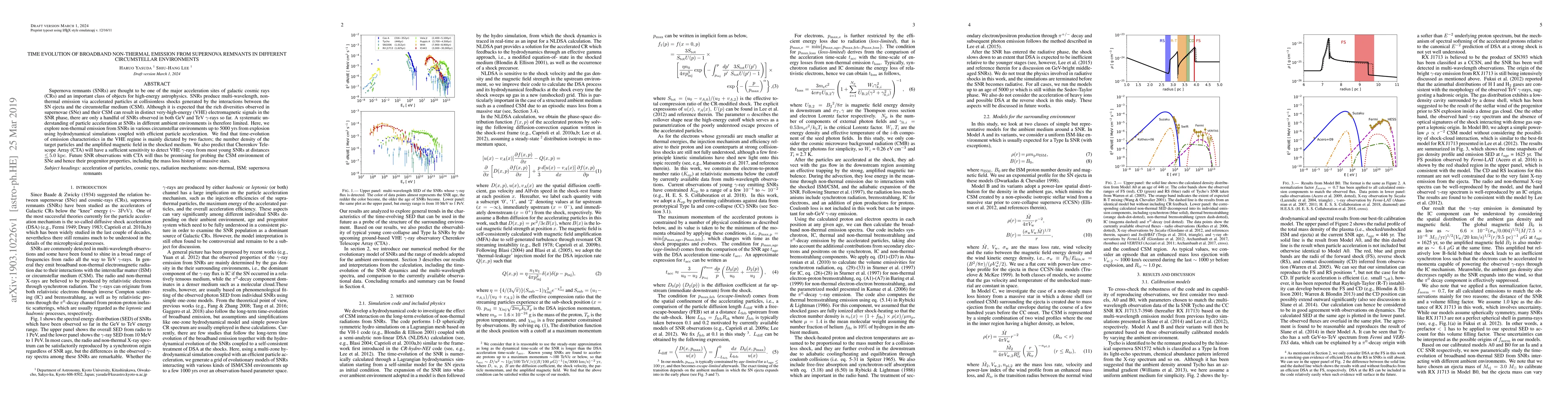 The research employs hydrodynamical simulations coupled with efficient particle acceleration to model the time evolution of supernova remnants (SNRs) in various circumstellar environments, focusing on non-thermal broadband emission characteristics.