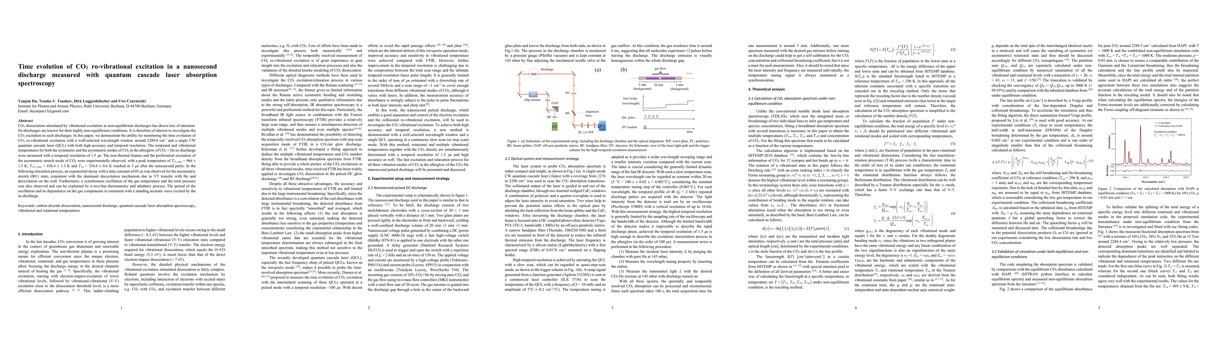 This paper investigates the time evolution of CO$_2$ ro-vibrational excitation in nanosecond discharges using quantum cascade laser absorption spectroscopy. It reveals non-thermal excitation and preferential excitation of the asymmetric stretch mode, with peak temperatures reached shortly after the discharge, followed by an exponential decay consistent with deexcitation mechanisms.