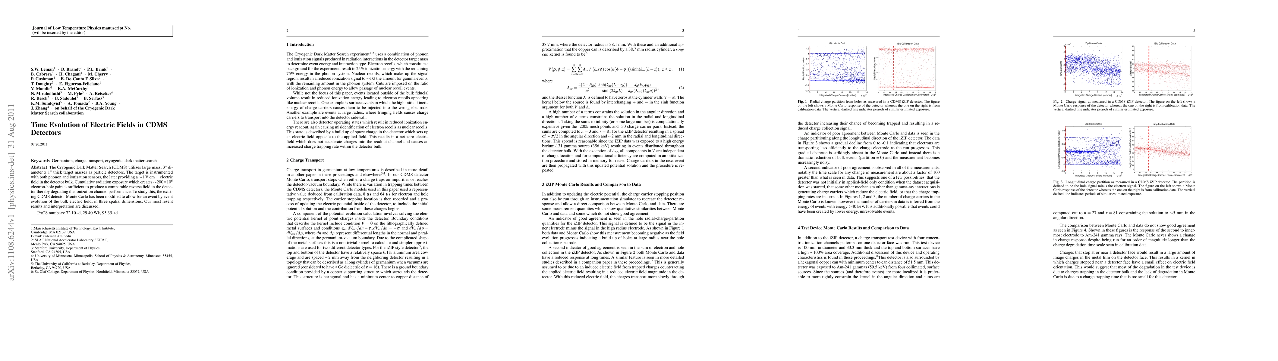 The Cryogenic Dark Matter Search (CDMS) detectors experience degradation in ionization performance due to radiation-induced reverse electric fields. A modified Monte Carlo model now tracks the time evolution of these electric fields in three dimensions, providing insights into their impact on detector functionality.