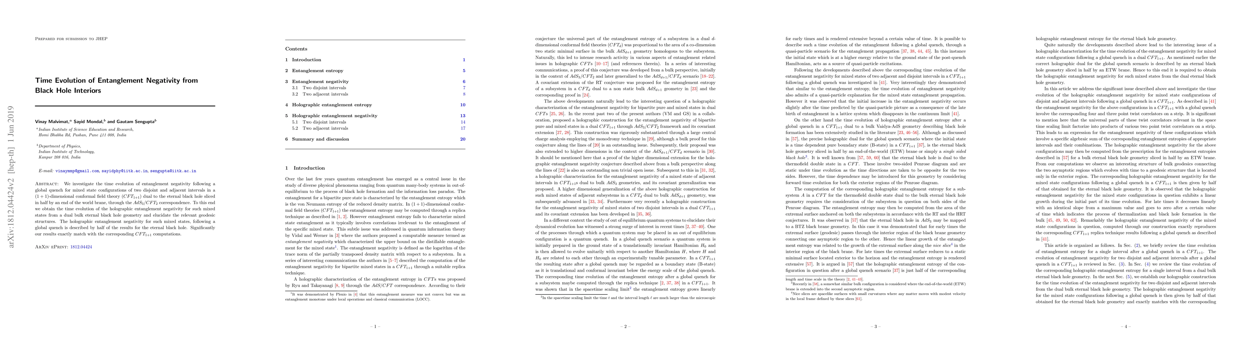 This paper examines the time evolution of entanglement negativity in a ($1+1$)-dimensional conformal field theory dual to an eternal black hole, following a global quench. It finds that the holographic entanglement negativity matches exactly with the corresponding CFT computations, revealing geodesic structures in the dual bulk eternal black hole geometry.