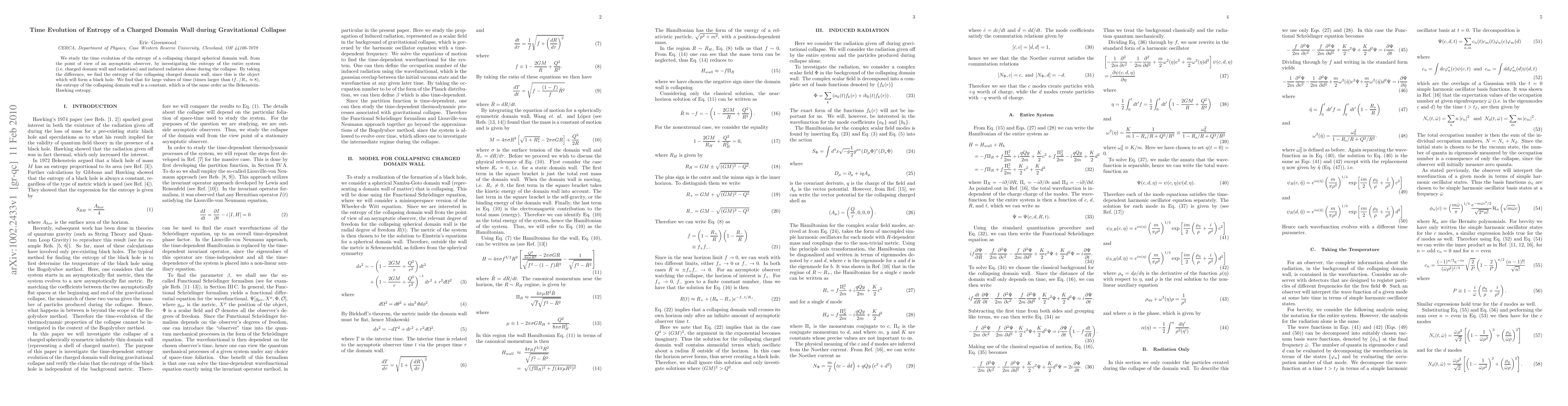 This paper investigates the entropy evolution of a charged domain wall undergoing gravitational collapse, finding that the entropy stabilizes at a value comparable to the Bekenstein-Hawking entropy for large times, indicating a connection between the wall's entropy and black hole entropy.