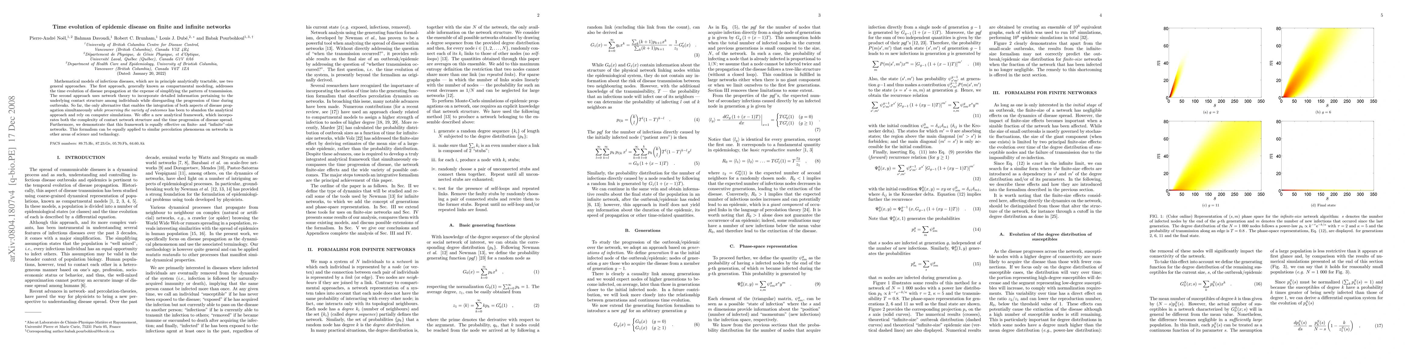 Mathematical models of infectious diseases, which are in principle analytically tractable, use two general approaches. The first approach, generally known as compartmental modeling, addresses the time evolution of disease propagation at the expense of simplifying the pattern of transmission. The second approach uses network theory to incorporate detailed information pertaining to the underlying contact structure among individuals while disregarding the progression of time during outbreaks. So far, the only alternative that enables the integration of both aspects of disease propagation simultaneously while preserving the variety of outcomes has been to abandon the analytical approach and rely on computer simulations. We offer a new analytical framework, which incorporates both the complexity of contact network structure and the time progression of disease spread. Furthermore, we demonstrate that this framework is equally effective on finite- and "infinite"-size networks. This formalism can be equally applied to similar percolation phenomena on networks in other areas of science and technology.