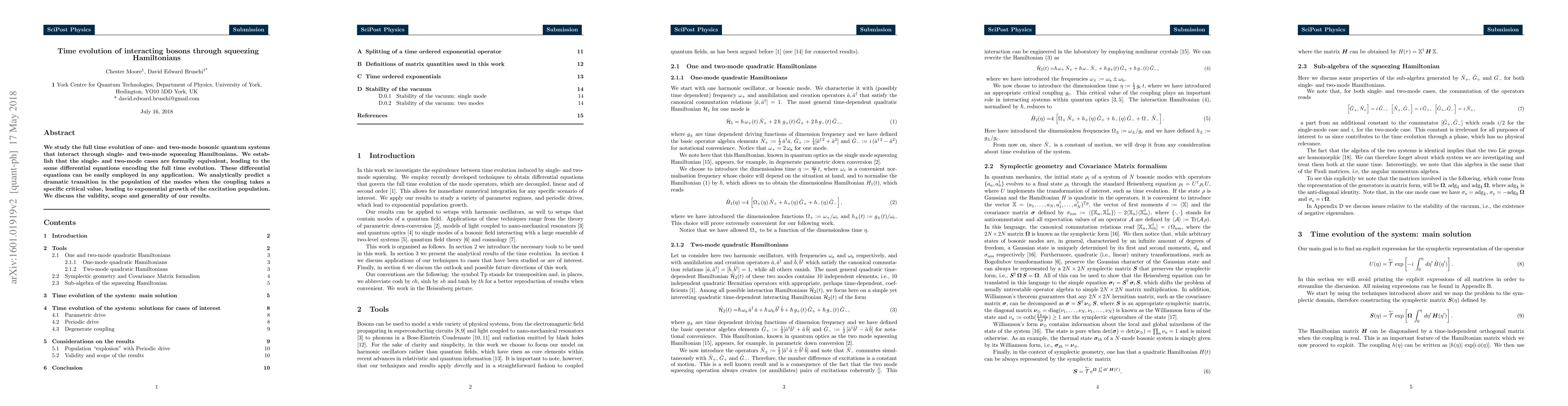 Researchers study the time evolution of bosonic quantum systems interacting through squeezing Hamiltonians, finding a dramatic transition in population growth at a critical coupling value.