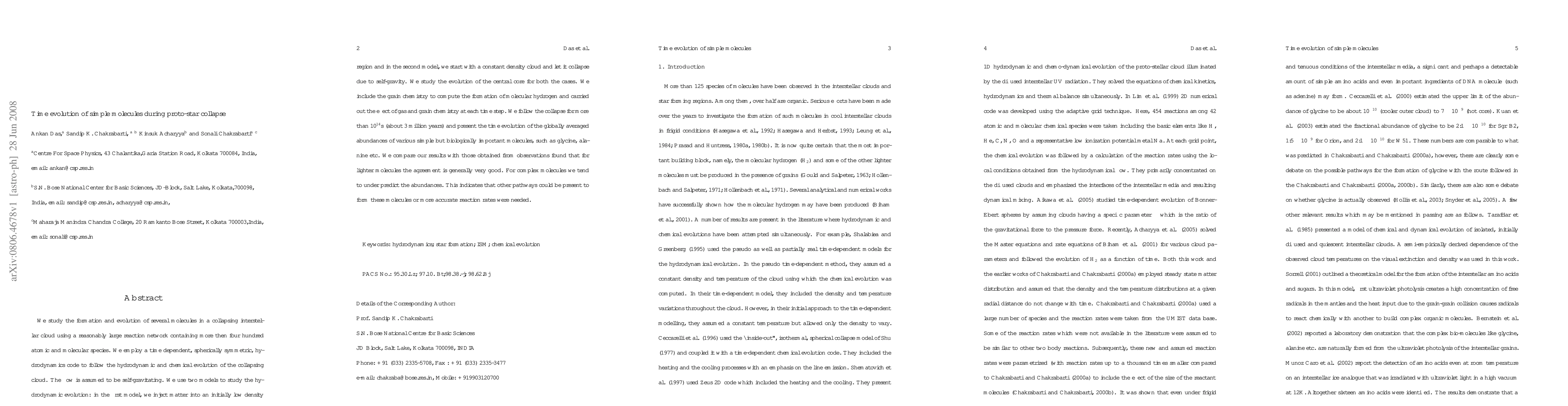 This paper investigates the formation and evolution of molecules in collapsing interstellar clouds using a large reaction network and hydrodynamics modeling, focusing on the time evolution of simple biologically important molecules like glycine and alanine. The study finds good agreement with observations for lighter molecules but suggests alternative pathways or improved reaction rates may be needed for complex molecules.