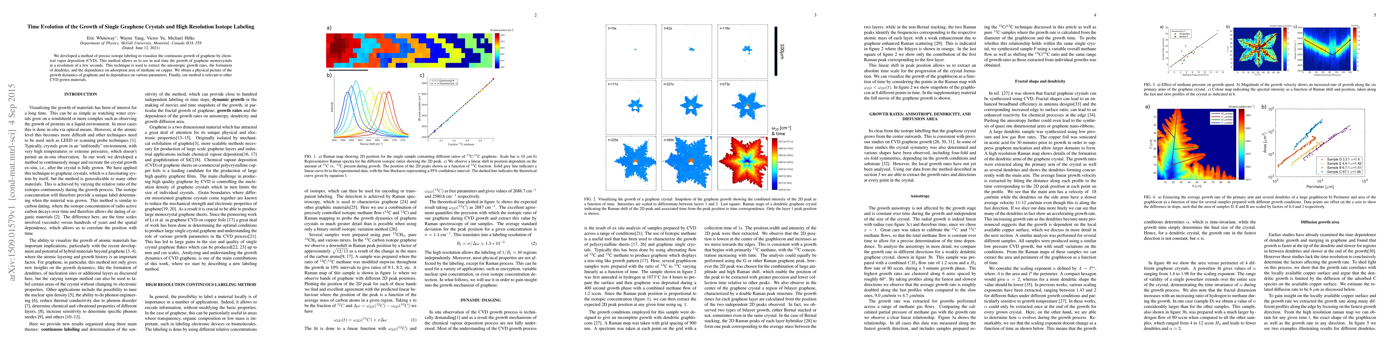 We developed a method of precise isotope labeling to visualize the continuous growth of graphene by chemical vapor deposition (CVD). This method allows us to see in real time the growth of graphene monocrystals at a resolution of a few seconds. This technique is used to extract the anisotropic growth rates, the formation of dendrites, and the dependence on adsorption area of methane on copper. We obtain a physical picture of the growth dynamics of graphene and its dependence on various parameters. Finally, our method is relevant to other CVD grown materials.