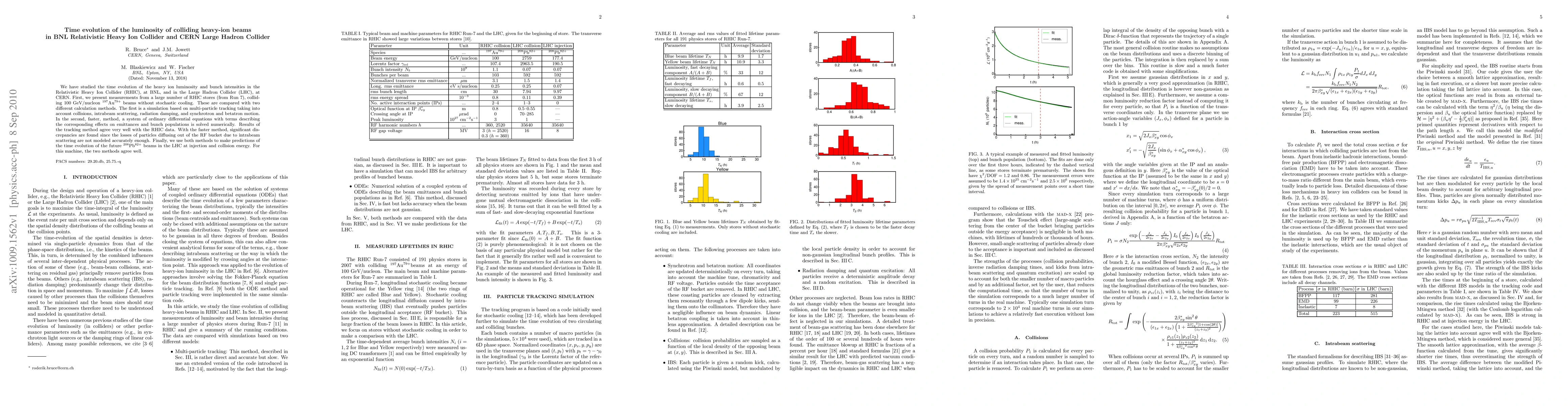 This paper investigates the time evolution of luminosity and bunch intensities in heavy ion collisions at RHIC and LHC, comparing simulation results with experimental data. The detailed tracking simulation aligns well with RHIC data, while a faster method shows discrepancies due to inaccurate modeling of particle losses. Both methods predict similar results for future LHC Pb beams.