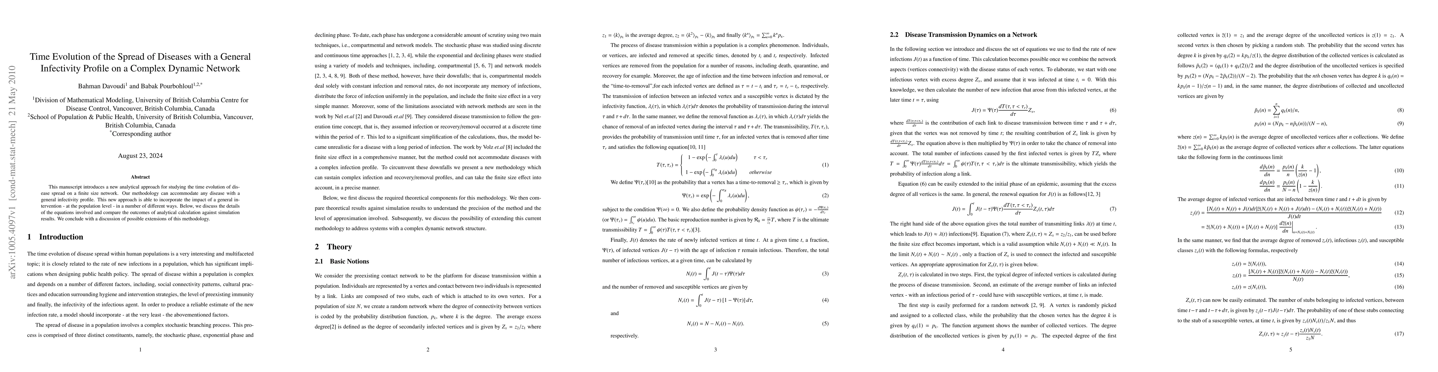 This manuscript introduces a new analytical approach for studying the time evolution of disease spread on a finite size network. Our methodology can accommodate any disease with a general infectivity profile. This new approach is able to incorporate the impact of a general intervention - at the population level - in a number of different ways. Below, we discuss the details of the equations involved and compare the outcomes of analytical calculation against simulation results. We conclude with a discussion of possible extensions of this methodology.