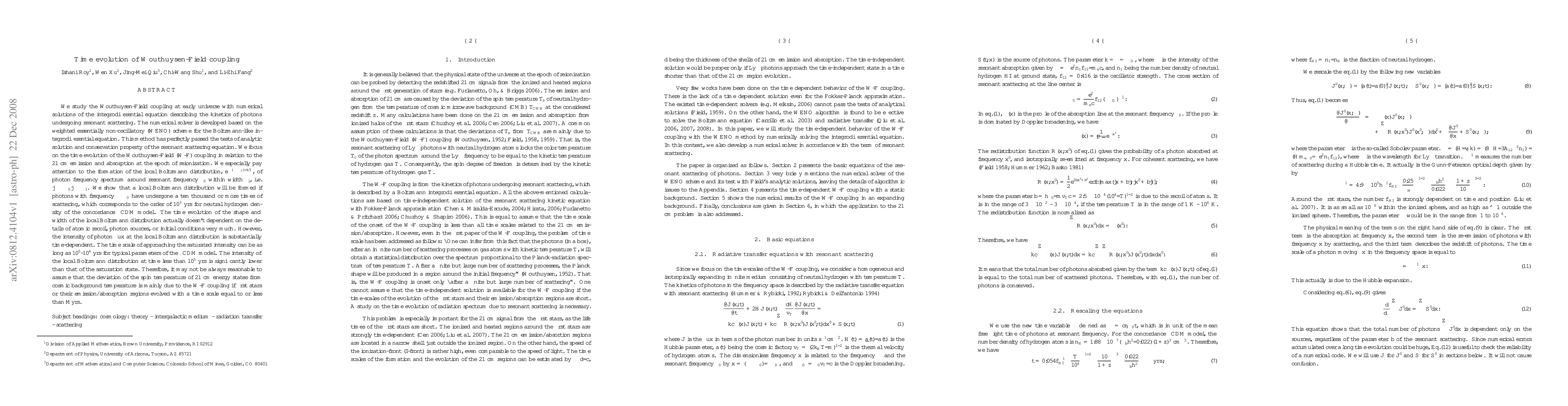We study the Wouthuysen-Field coupling at early universe with numerical solutions of the integrodifferential equation describing the kinetics of photons undergoing resonant scattering. The numerical solver is developed based on the weighted essentially non-oscillatory (WENO) scheme for the Boltzmann-like integrodifferential equation. We focus on the time evolution of the Wouthuysen-Field (W-F) coupling in relation to the 21 cm emission and absorption at the epoch of reionization. We show that a local Boltzmann distribution will be formed if photons with frequency \sim \nu_0 have undergone a ten thousand or more times of scattering, which corresponds to the order of 10^3 yrs for neutral hydrogen density of the concordance \Lambda CDM model. The time evolution of the shape and width of the local Boltzmann distribution actually doesn't dependent on the details of atomic recoil, photon sources, or initial conditions very much. However, the intensity of photon flux at the local Boltzmann distribution is substantially time-dependent. The time scale of approaching the saturated intensity can be as long as 10^5-10^6 yrs for typical parameters of the \Lambda CDM model. The intensity of the local Boltzmann distribution at time less than 10^5 yrs is significantly lower than that of the saturation state. Therefore, it may not be always reasonable to assume that the deviation of the spin temperature of 21 cm energy states from cosmic background temperature is mainly due to the W-F coupling if first stars or their emission/absorption regions evolved with a time scale equal to or less than Myrs.