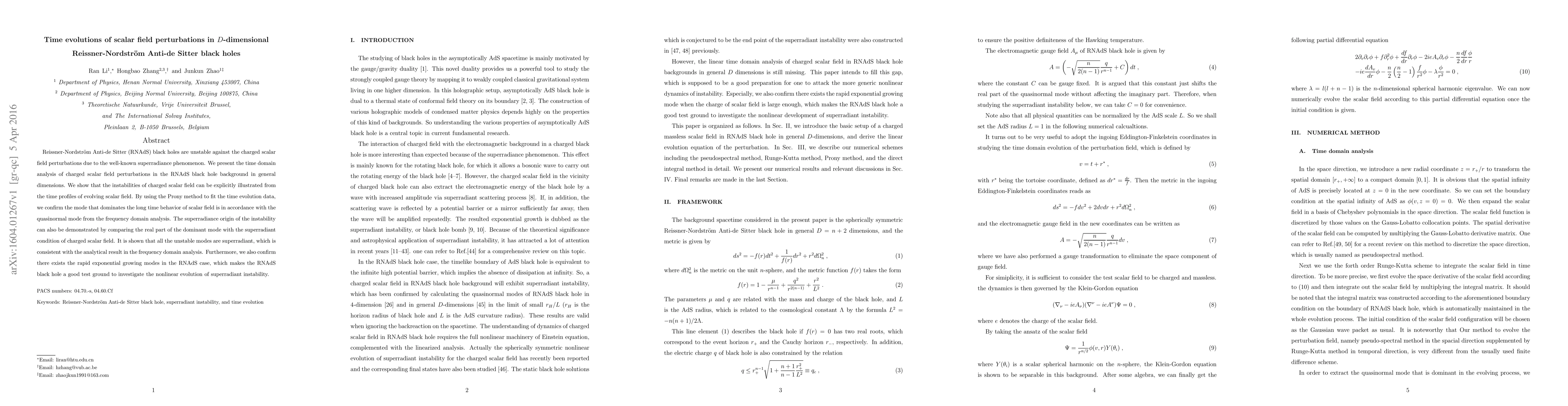 This paper investigates the time evolution of charged scalar field perturbations in $D$-dimensional Reissner-Nordström Anti-de Sitter (RNAdS) black holes, revealing the superradiance-driven instabilities through time domain analysis. The study confirms that unstable modes are superradiant, consistent with frequency domain results, and identifies rapid exponential growth modes, highlighting RNAdS black holes as a suitable model for studying nonlinear superradiant instabilities.