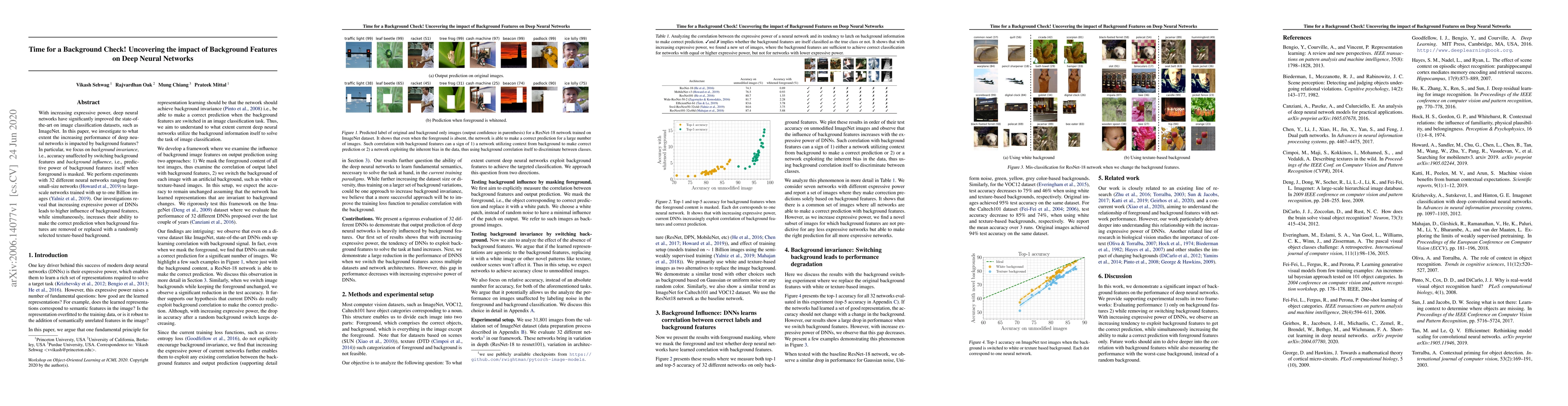 With increasing expressive power, deep neural networks have significantly improved the state-of-the-art on image classification datasets, such as ImageNet. In this paper, we investigate to what extent the increasing performance of deep neural networks is impacted by background features? In particular, we focus on background invariance, i.e., accuracy unaffected by switching background features and background influence, i.e., predictive power of background features itself when foreground is masked. We perform experiments with 32 different neural networks ranging from small-size networks to large-scale networks trained with up to one Billion images. Our investigations reveal that increasing expressive power of DNNs leads to higher influence of background features, while simultaneously, increases their ability to make the correct prediction when background features are removed or replaced with a randomly selected texture-based background.