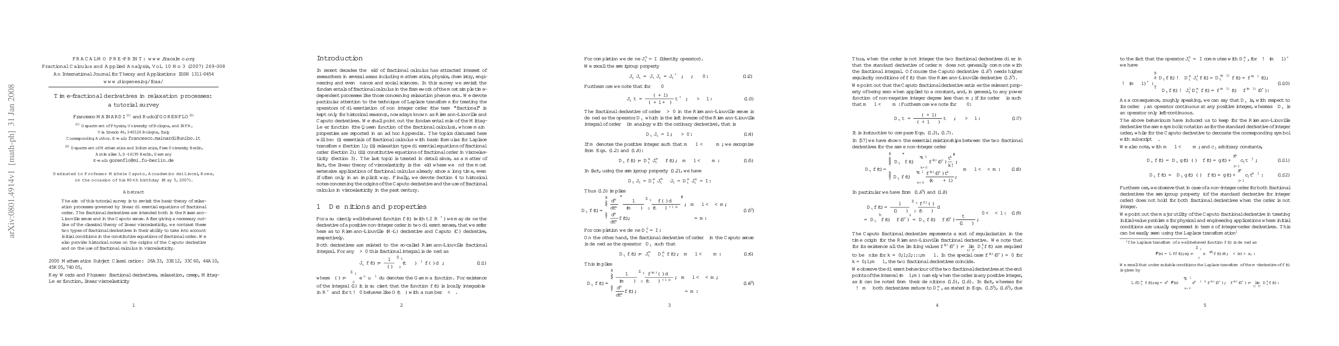 This tutorial survey explores the theory of relaxation processes using fractional-order differential equations, comparing Riemann-Liouville and Caputo derivatives, and highlights their roles in linear viscoelasticity while providing historical context on the development of fractional calculus.