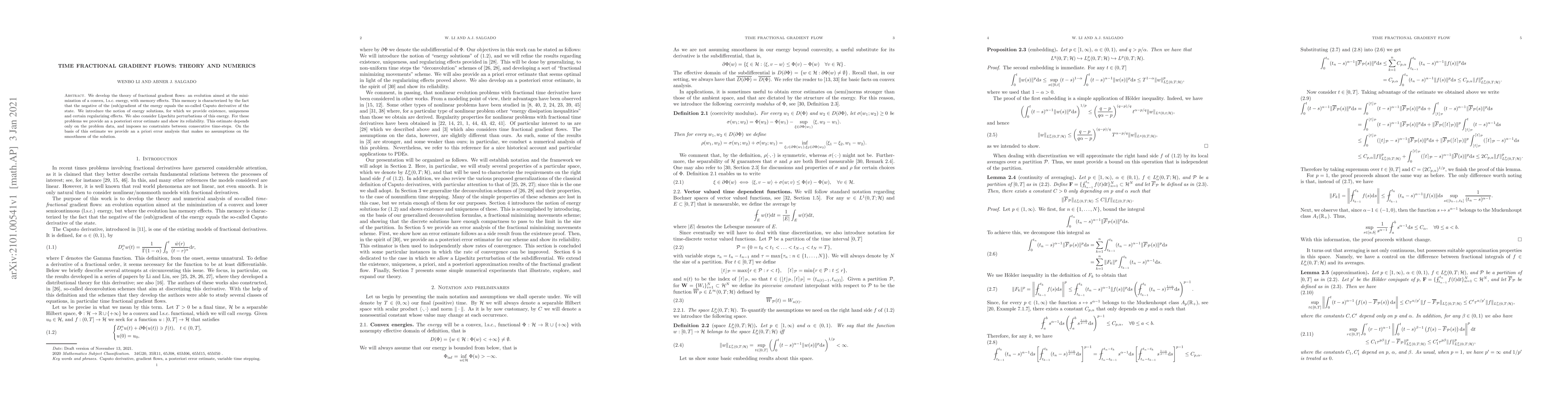 We develop the theory of fractional gradient flows: an evolution aimed at the minimization of a convex, l.s.c.~energy, with memory effects. This memory is characterized by the fact that the negative of the (sub)gradient of the energy equals the so-called Caputo derivative of the state. We introduce the notion of energy solutions, for which we provide existence, uniqueness and certain regularizing effects. We also consider Lipschitz perturbations of this energy. For these problems we provide an a posteriori error estimate and show its reliability. This estimate depends only on the problem data, and imposes no constraints between consecutive time-steps. On the basis of this estimate we provide an a priori error analysis that makes no assumptions on the smoothness of the solution.