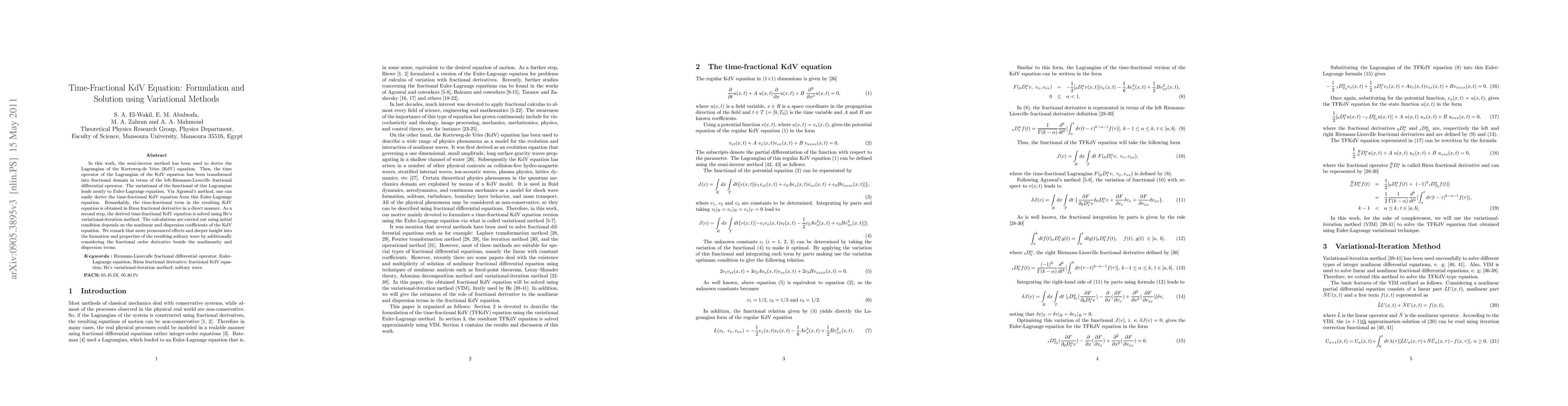 Researchers derived a time-fractional KdV equation using variational methods and solved it using He's variational-iteration method, revealing new insights into solitary wave formation.