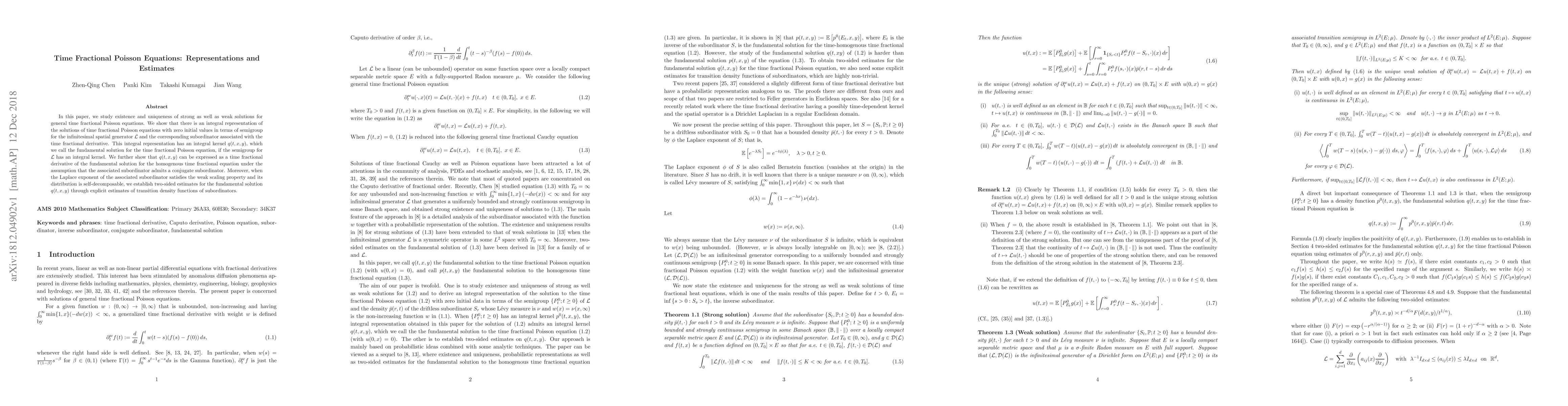 This paper investigates the existence and uniqueness of solutions for time fractional Poisson equations, presenting an integral representation of solutions in terms of a semigroup and a subordinator. It also establishes two-sided estimates for the fundamental solution under specific conditions on the associated subordinator.
