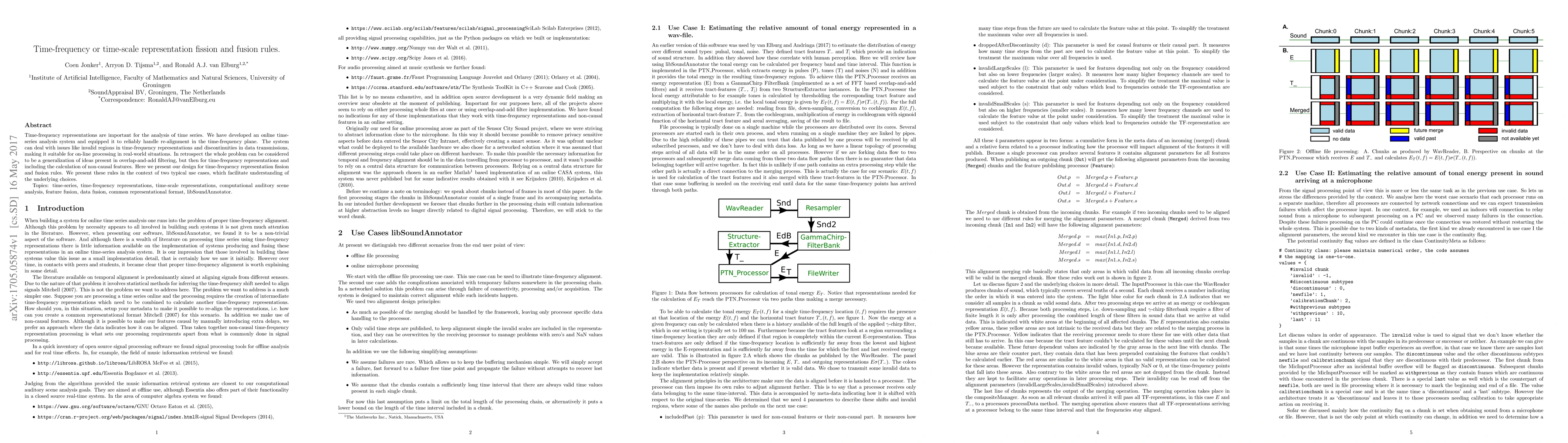 Time-frequency representations are important for the analysis of time series. We have developed an online time-series analysis system and equipped it to reliably handle re-alignment in the time-frequency plane. The system can deal with issues like invalid regions in time-frequency representations and discontinuities in data transmissions, making it suitable for on-line processing in real-world situations. In retrospect the whole problem can be considered to be a generalization of ideas present in overlap-and-add filtering, but then for time-frequency representations and including the calculation of non-causal features. Here we present our design for time-frequency representation fission and fusion rules. We present these rules in the context of two typical use cases, which facilitate understanding of the underlying choices.