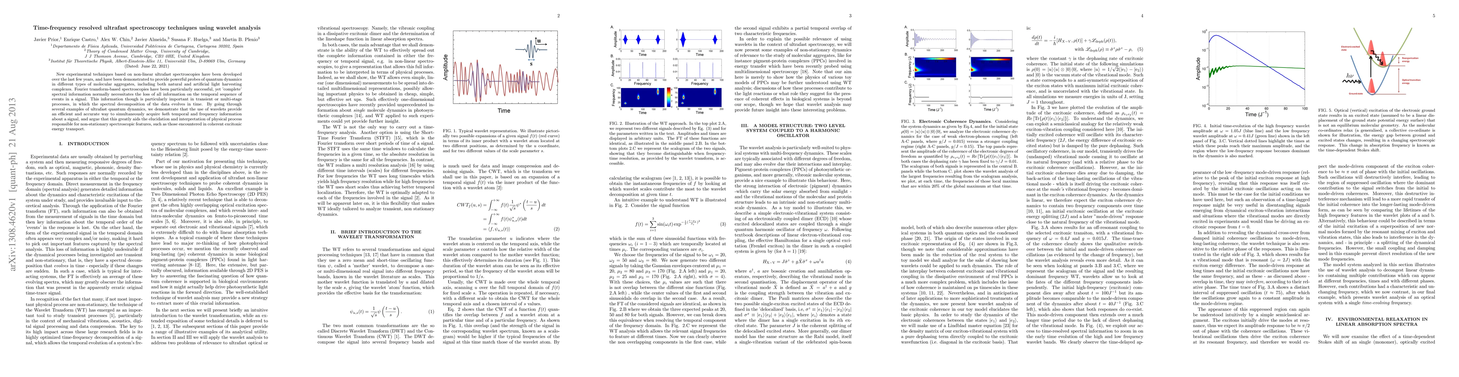 New experimental techniques based on non-linear ultrafast spectroscopies have been developed over the last few years, and have been demonstrated to provide powerful probes of quantum dynamics in different types of molecular aggregates, including both natural and artificial light harvesting complexes. Fourier transform-based spectroscopies have been particularly successful, yet 'complete' spectral information normally necessitates the loss of all information on the temporal sequence of events in a signal. This information though is particularly important in transient or multi-stage processes, in which the spectral decomposition of the data evolves in time. By going through several examples of ultrafast quantum dynamics, we demonstrate that the use of wavelets provide an efficient and accurate way to simultaneously acquire both temporal and frequency information about a signal, and argue that this greatly aids the elucidation and interpretation of physical process responsible for non-stationary spectroscopic features, such as those encountered in coherent excitonic energy transport.