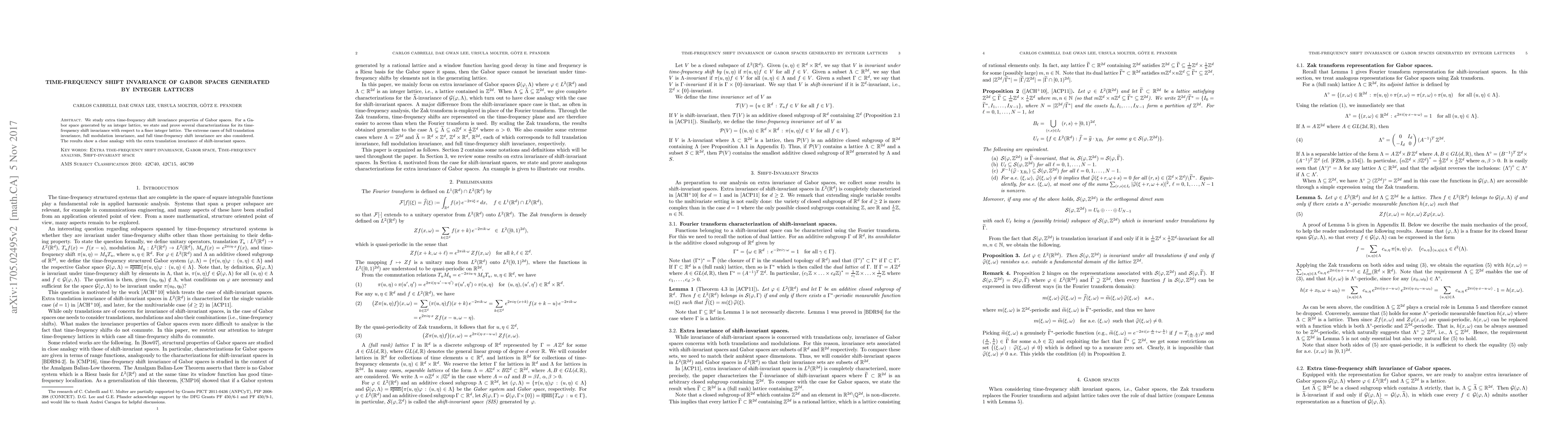 This paper investigates the time-frequency shift invariance properties of Gabor spaces generated by integer lattices, proving several characterizations for invariance with respect to finer integer lattices. It also examines extreme cases of full translation, modulation, and time-frequency shift invariance, revealing analogies with extra translation invariance in shift-invariant spaces.