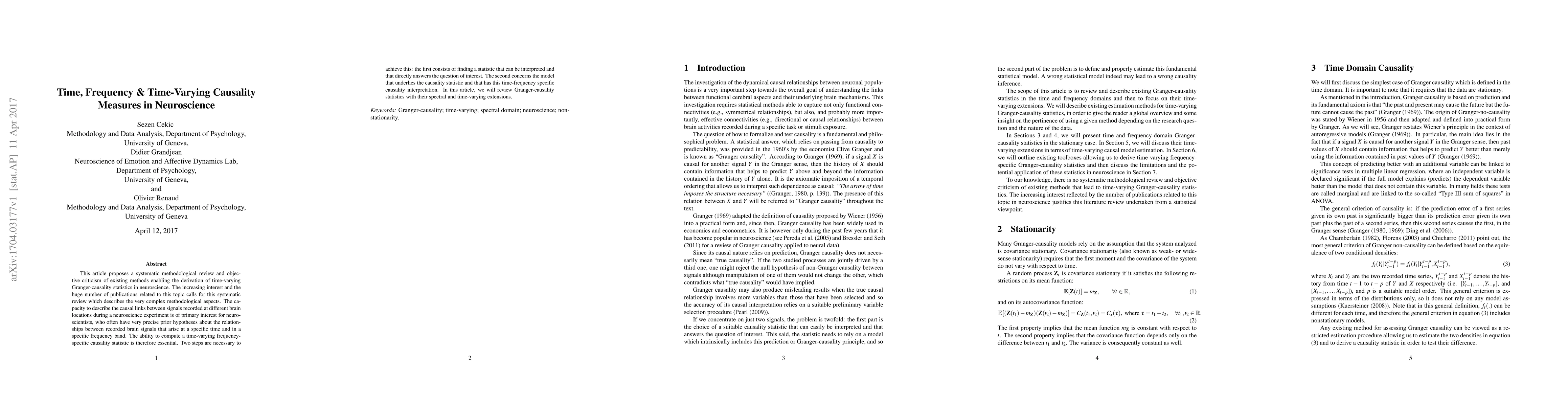 This paper reviews methods for time-varying Granger-causality statistics in neuroscience, focusing on the derivation of frequency-specific causality measures. It emphasizes the importance of these measures for understanding causal links between brain signals and critiques existing models and statistics.