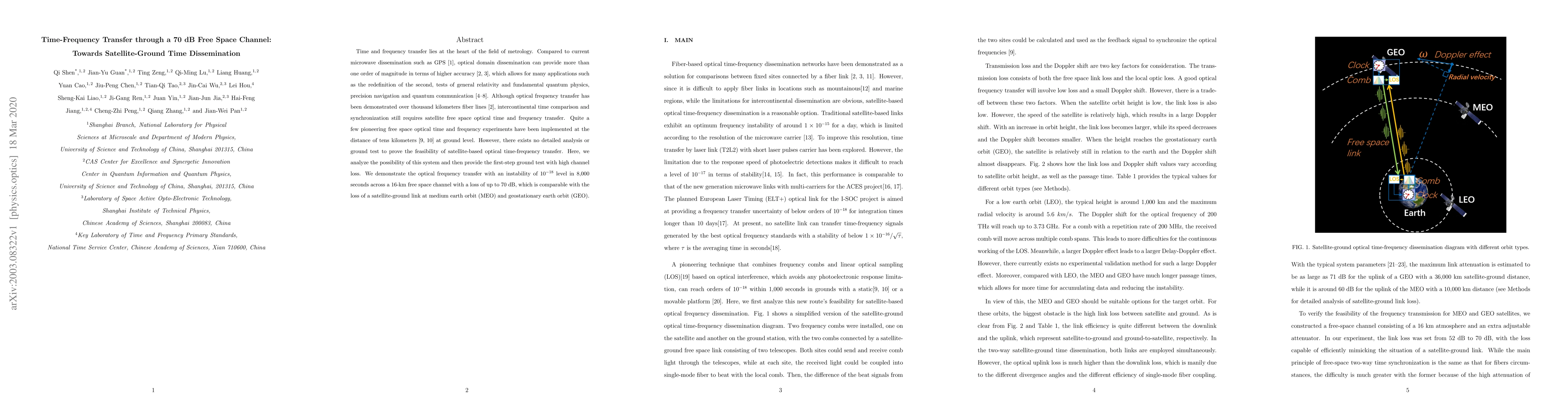 This paper investigates the feasibility of satellite-ground optical time-frequency transfer through a 70 dB free space channel, demonstrating an optical frequency transfer with an instability of $10^{-18}$ over 16 km, which mirrors the expected loss in satellite-ground links.