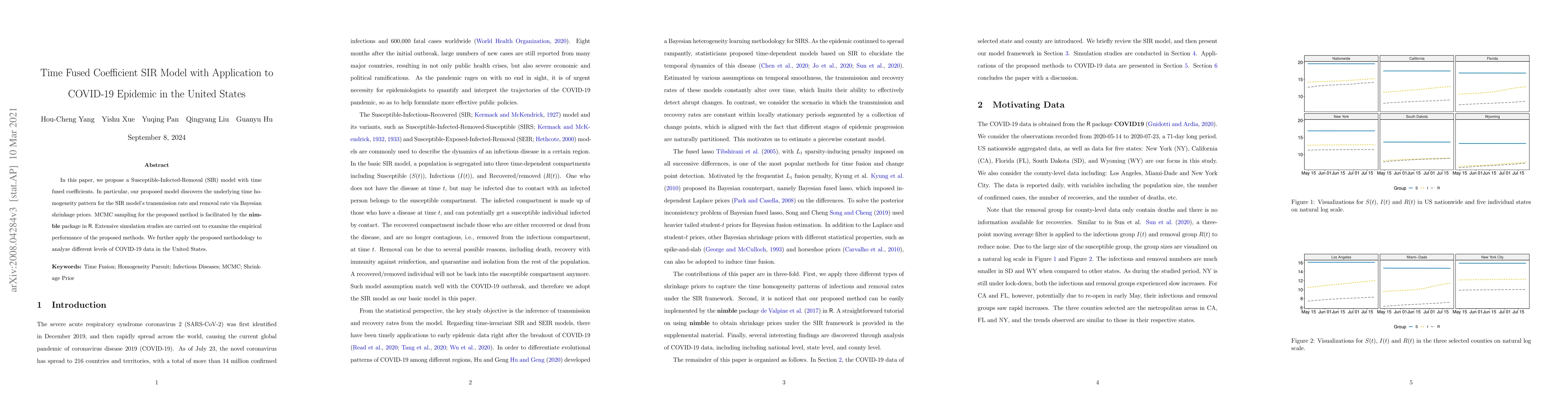 This paper introduces a novel SIR model with time-fused coefficients to analyze COVID-19 transmission and removal rates in the United States, employing Bayesian shrinkage priors and MCMC sampling via the nimble package in R. The model's effectiveness is validated through simulations and applied to real-world COVID-19 data.