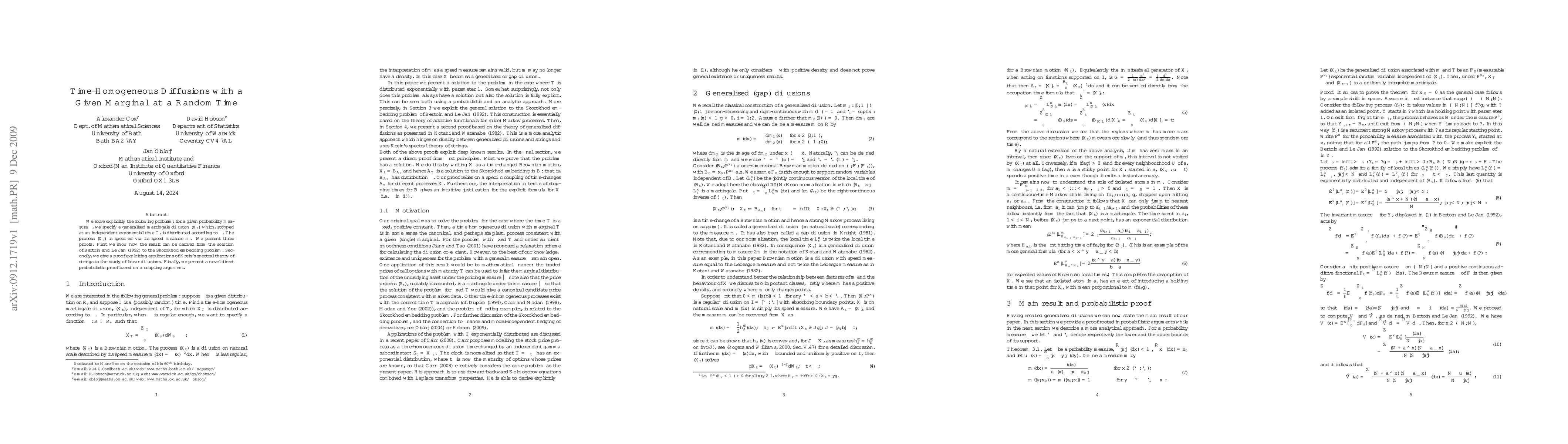 We solve explicitly the following problem: for a given probability measure mu, we specify a generalised martingale diffusion X which, stopped at an independent exponential time T, is distributed according to mu. The process X is specified via its speed measure m. We present three proofs. First we show how the result can be derived from the solution of Bertoin and Le Jan (1992) to the Skorokhod embedding problem. Secondly, we give a proof exploiting applications of Krein's spectral theory of strings to the study of linear diffusions. Finally, we present a novel direct probabilistic proof based on a coupling argument.