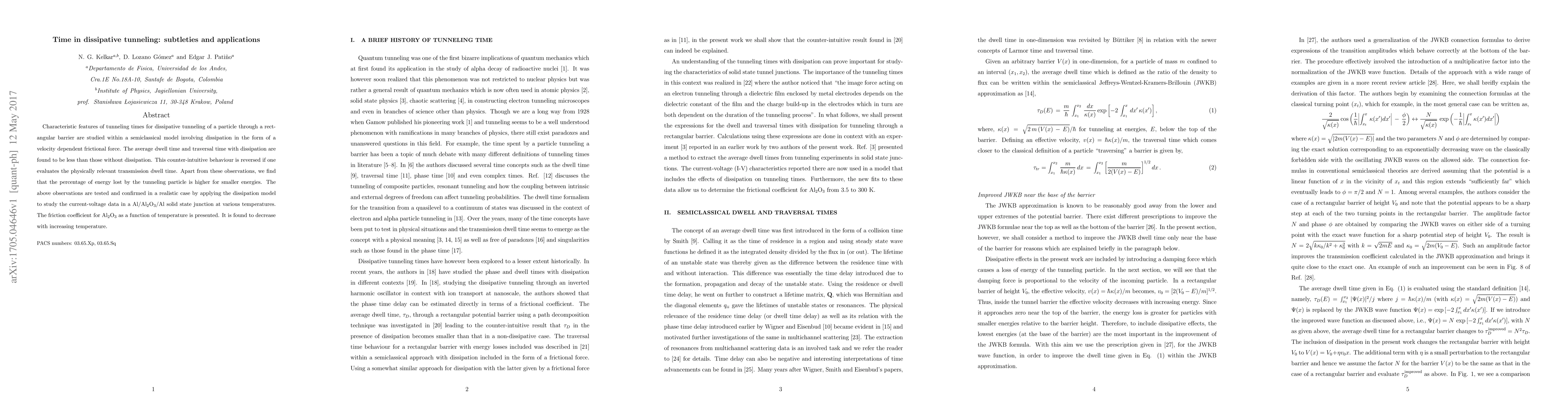 This research investigates dissipative tunneling, finding that average dwell and traversal times decrease with dissipation, contrary to intuition. This is reversed when considering transmission dwell time. The study also reveals higher energy loss for lower particle energies. These findings are validated using a solid-state junction model, showing a decreasing friction coefficient with increasing temperature.