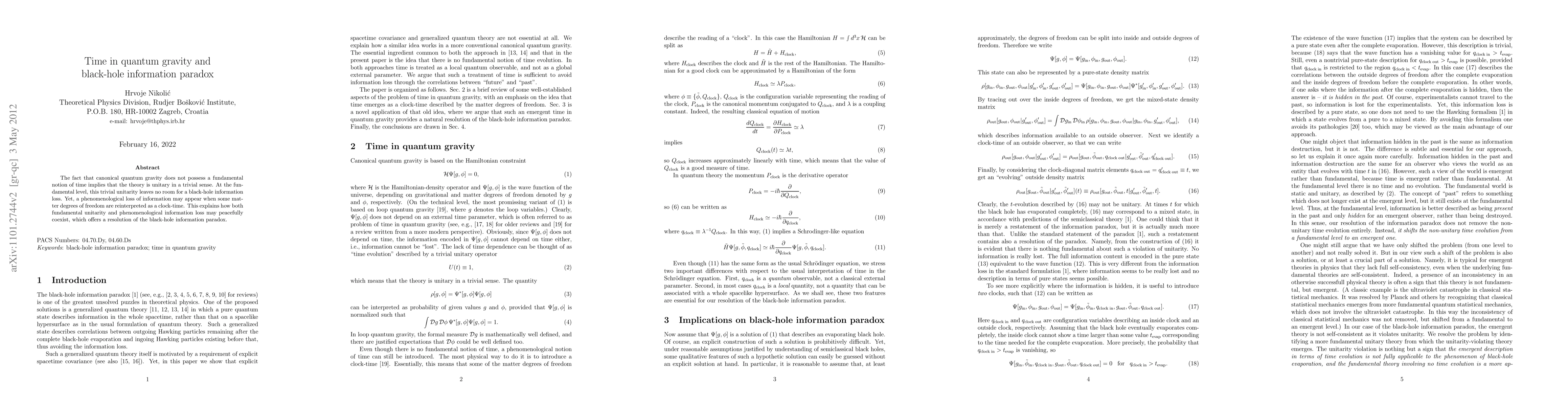 The paper argues that canonical quantum gravity lacks a fundamental time concept, leading to trivial unitarity and no fundamental information loss in black holes. It suggests that reinterpreting matter degrees as clock-time can create a phenomenological information loss, resolving the black-hole information paradox.