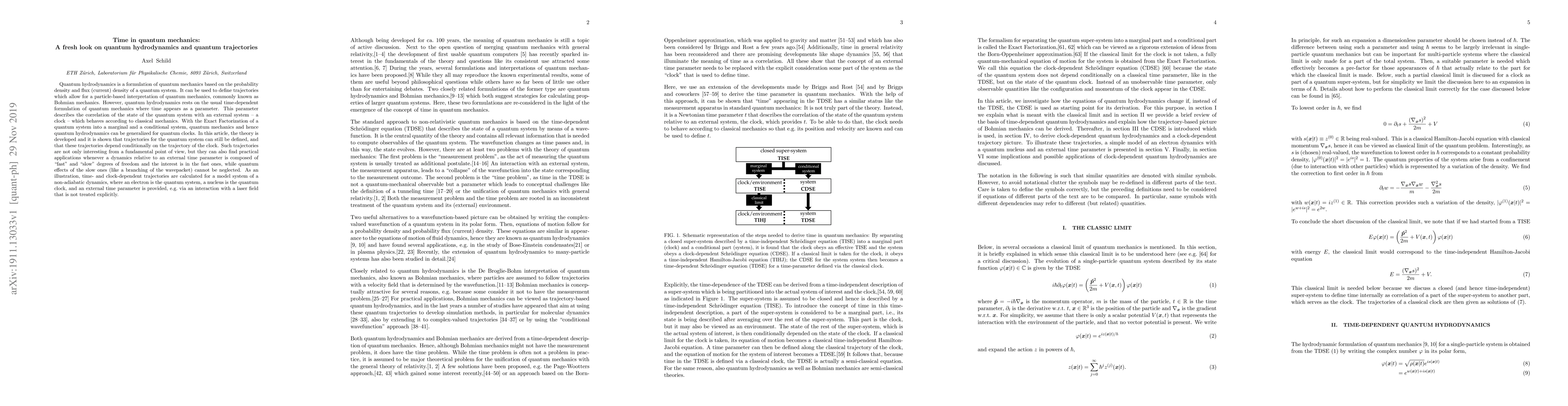 Quantum hydrodynamics is a formulation of quantum mechanics based on the probability density and flux (current) density of a quantum system. It can be used to define trajectories which allow for a particle-based interpretation of quantum mechanics, commonly known as Bohmian mechanics. However, quantum hydrodynamics rests on the usual time-dependent formulation of quantum mechanics where time appears as a parameter. This parameter describes the correlation of the state of the quantum system with an external system -- a clock -- which behaves according to classical mechanics. With the Exact Factorization of a quantum system into a marginal and a conditional system, quantum mechanics and hence quantum hydrodynamics can be generalized for quantum clocks. In this article, the theory is developed and it is shown that trajectories for the quantum system can still be defined, and that these trajectories depend conditionally on the trajectory of the clock. Such trajectories are not only interesting from a fundamental point of view, but they can also find practical applications whenever a dynamics relative to an external time parameter is composed of "fast" and "slow" degrees of freedom and the interest is in the fast ones, while quantum effects of the slow ones (like a branching of the wavepacket) cannot be neglected. As an illustration, time- and clock-dependent trajectories are calculated for a model system of a non-adiabatic dynamics, where an electron is the quantum system, a nucleus is the quantum clock, and an external time parameter is provided, e.g. via an interaction with a laser field that is not treated explicitly.