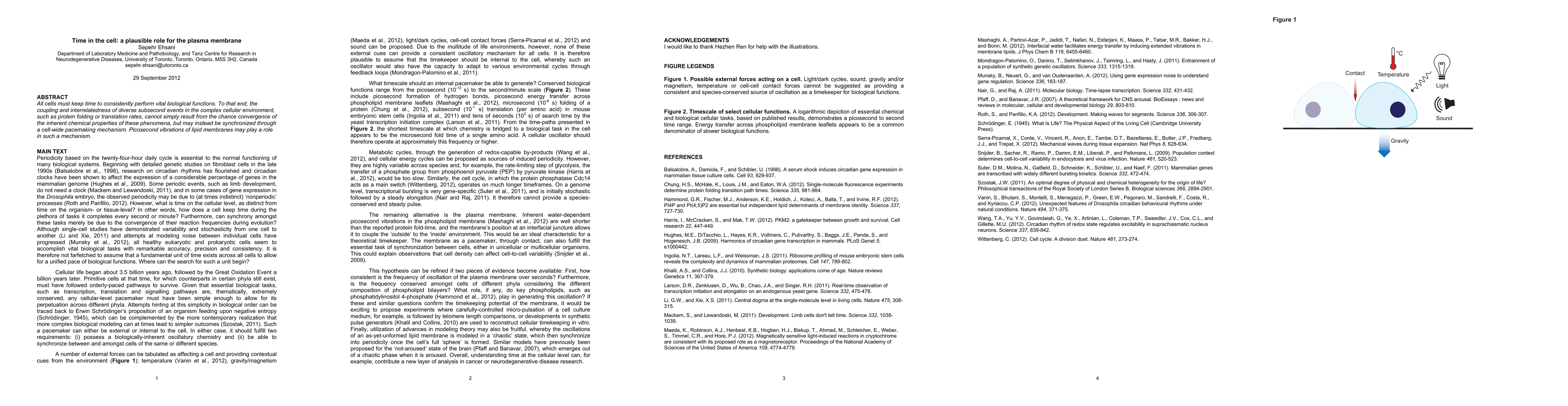 All cells must keep time to consistently perform vital biological functions. To that end, the coupling and interrelatedness of diverse subsecond events in the complex cellular environment, such as protein folding or translation rates, cannot simply result from the chance convergence of the inherent chemical properties of these phenomena, but may instead be synchronized through a cell-wide pacemaking mechanism. Picosecond vibrations of lipid membranes may play a role in such a mechanism.