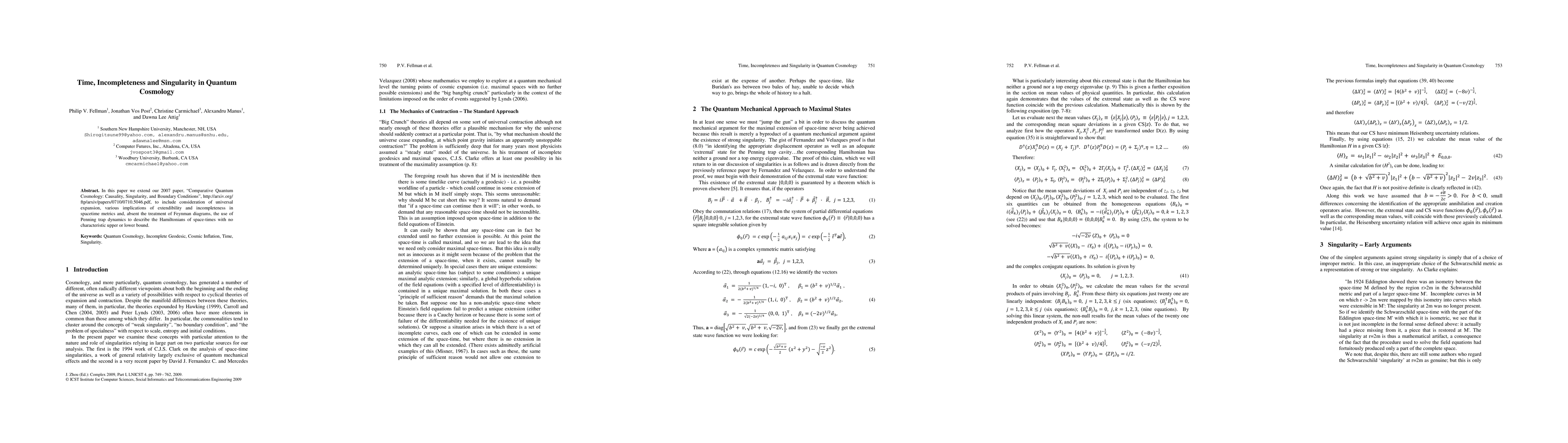 This paper explores time, incompleteness, and singularity in quantum cosmology, extending previous work on causality and boundary conditions to consider universal expansion and the use of Penning trap dynamics to describe infinite spacetime metrics.