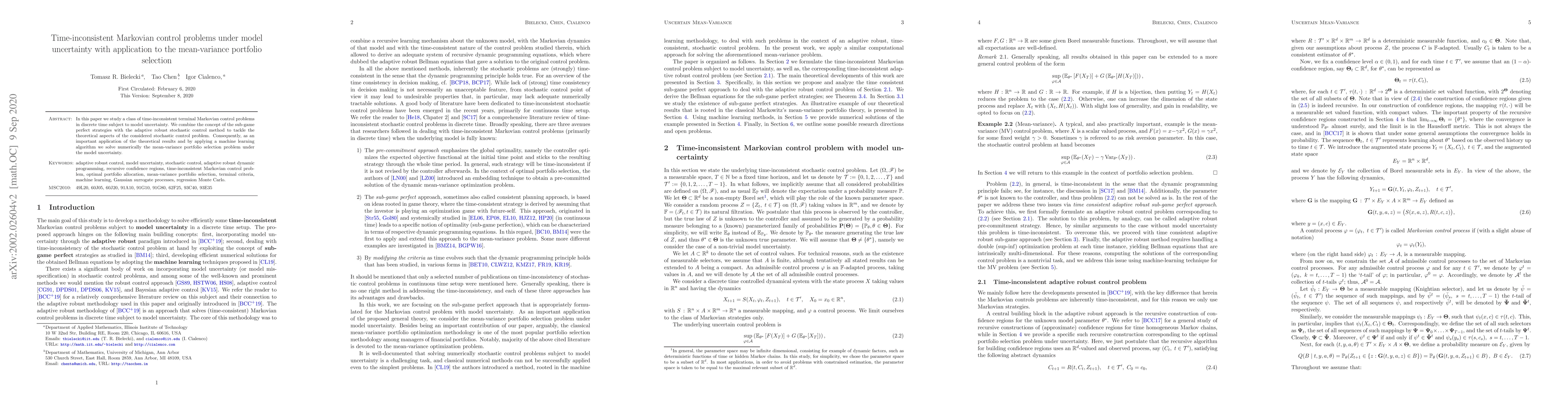 This paper investigates time-inconsistent Markovian control problems with model uncertainty, employing sub-game perfect strategies and adaptive robust stochastic methods. It applies these theoretical insights to numerically solve the mean-variance portfolio selection problem using machine learning under model uncertainty.