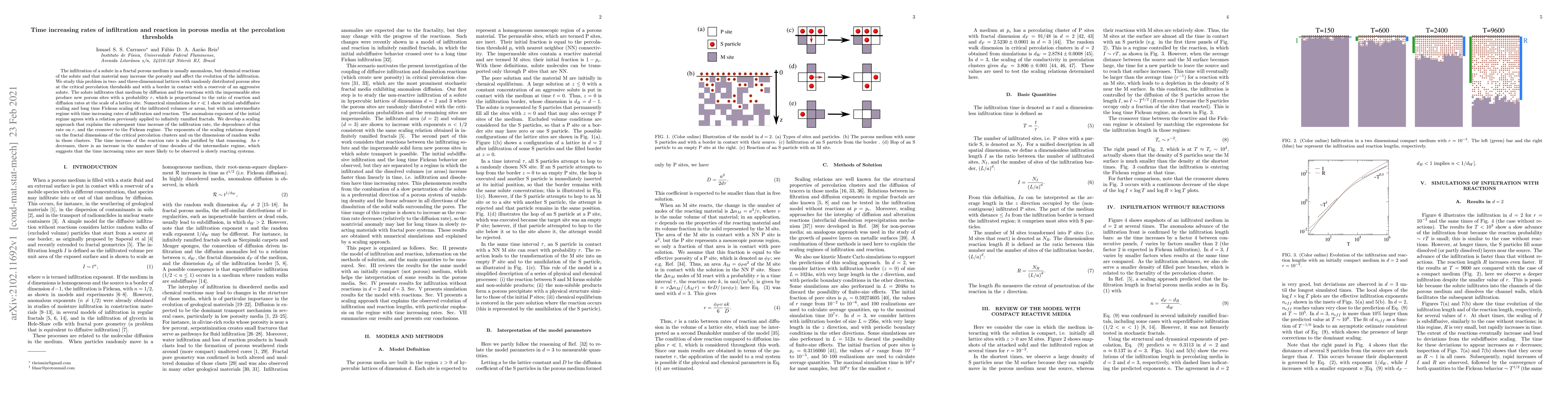 This research investigates the anomalous infiltration of a solute in fractal porous media at percolation thresholds, where chemical reactions increase porosity. It finds an intermediate regime with increasing infiltration and reaction rates, explained by a scaling approach dependent on fractal dimensions and random walk dimensions, suggesting longer intermediate regimes in slower reacting systems.