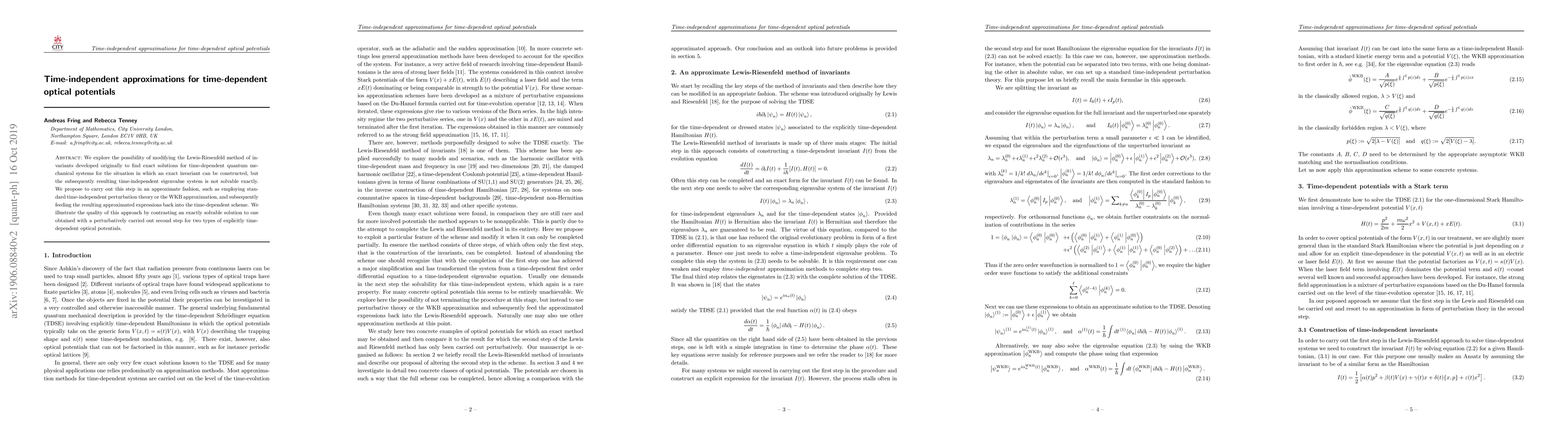 We explore the possibility of modifying the Lewis-Riesenfeld method of invariants developed originally to find exact solutions for time-dependent quantum mechanical systems for the situation in which an exact invariant can be constructed, but the subsequently resulting time-independent eigenvalue system is not solvable exactly. We propose to carry out this step in an approximate fashion, such as employing standard time-independent perturbation theory or the WKB approximation, and subsequently feeding the resulting approximated expressions back into the time-dependent scheme. We illustrate the quality of this approach by contrasting an exactly solvable solution to one obtained with a perturbatively carried out second step for two types of explicitly time-dependent optical potentials.