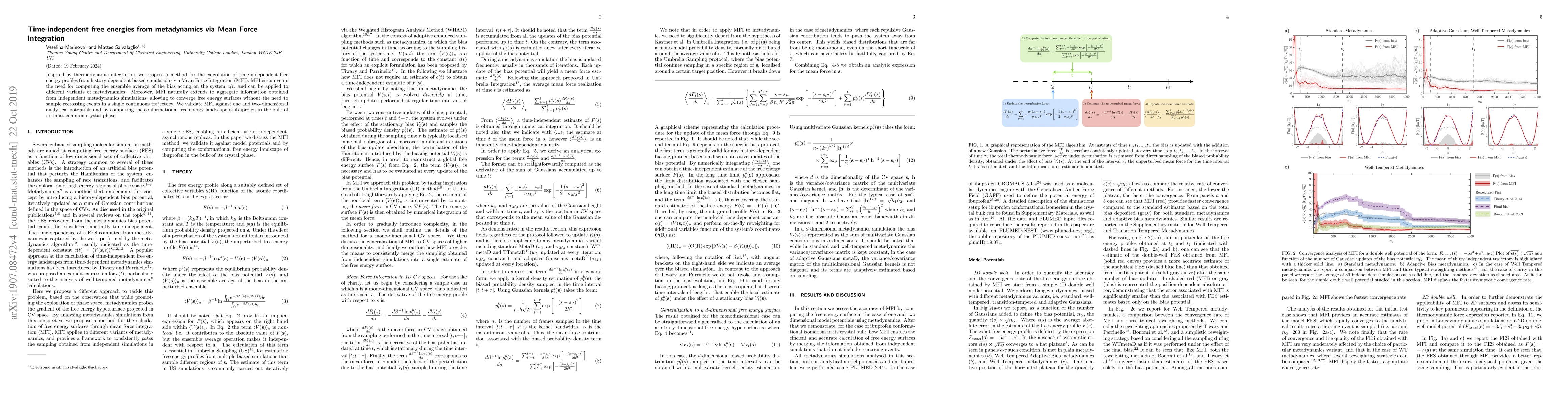 This paper proposes a method called Mean Force Integration (MFI) for calculating time-independent free energy profiles from biased metadynamics simulations, eliminating the need for ensemble averaging of the bias. MFI is validated against analytical potentials and applied to determine the conformational free energy landscape of ibuprofen.